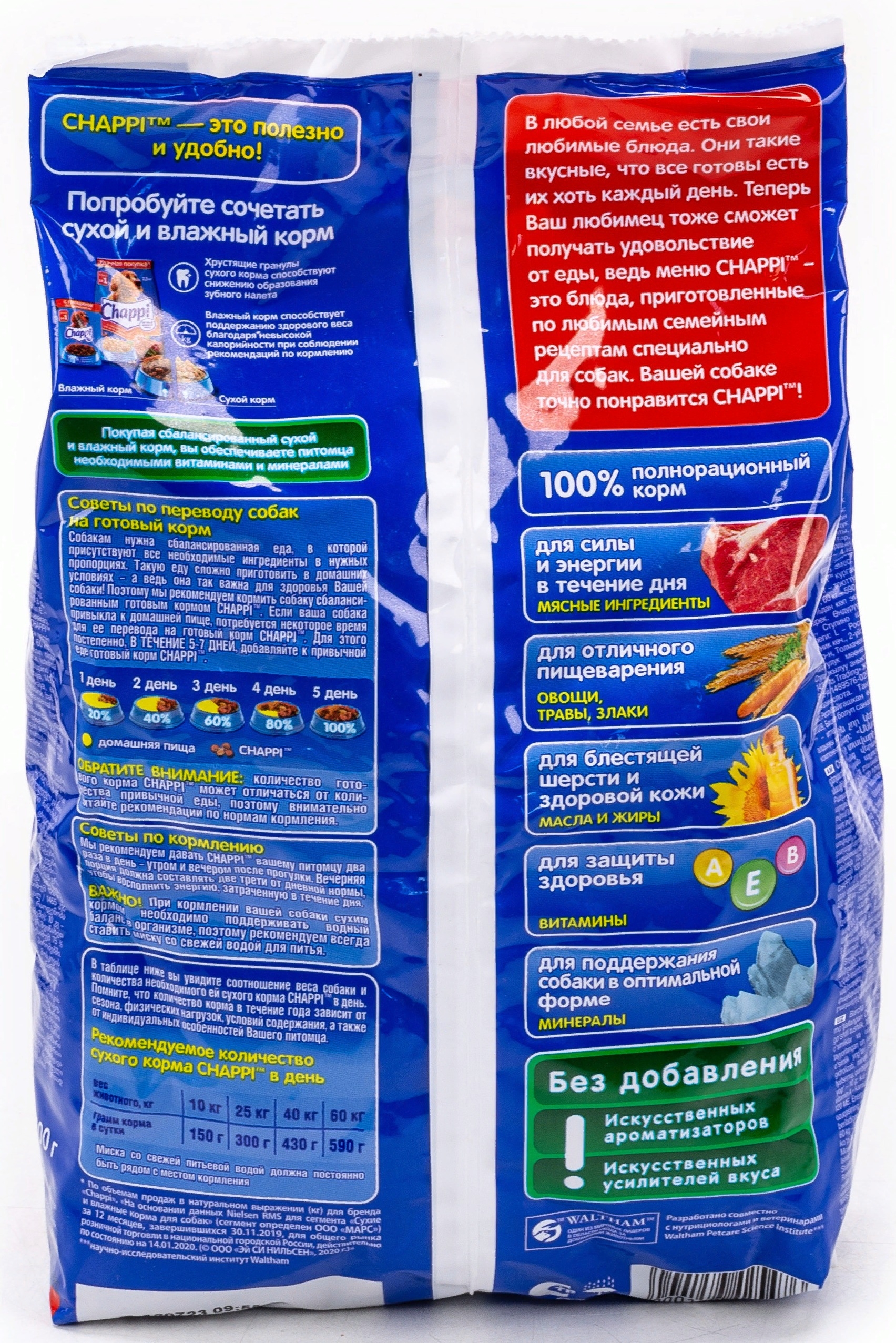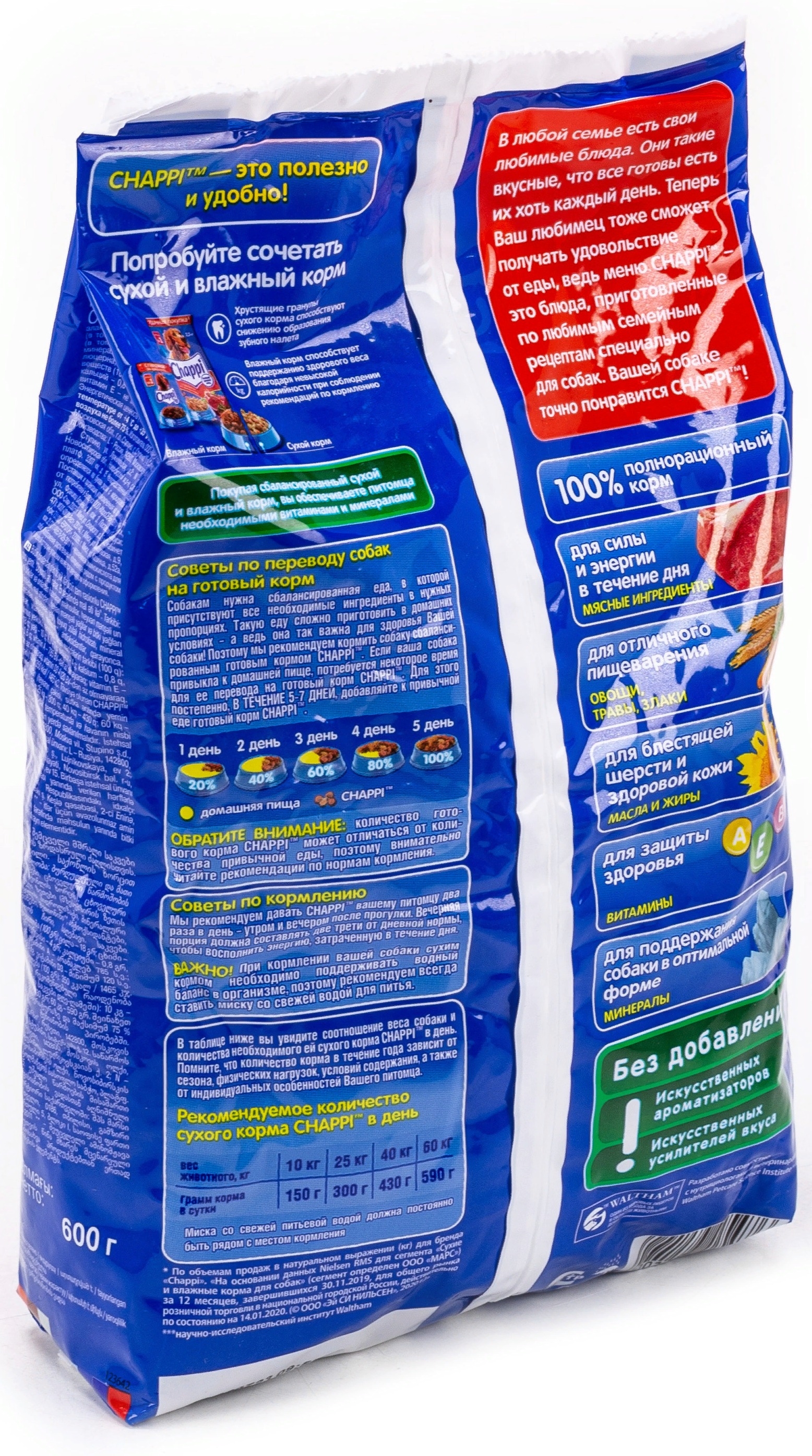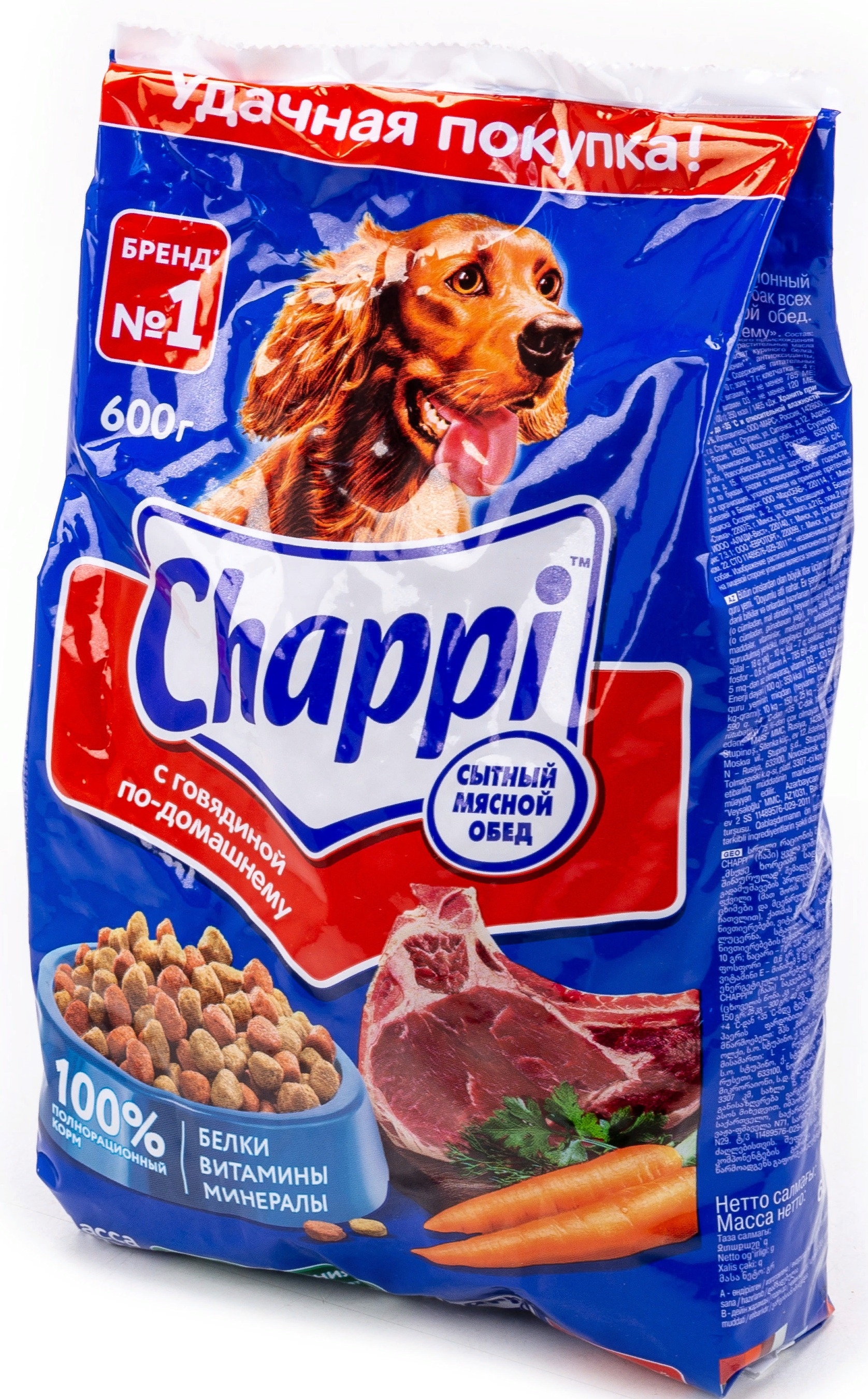 Корм сухой для собак Chappi / Чаппи Сытный Мясной обед с говядиной по-домашнему, хрустящие гранулы, 600г / зоотовары