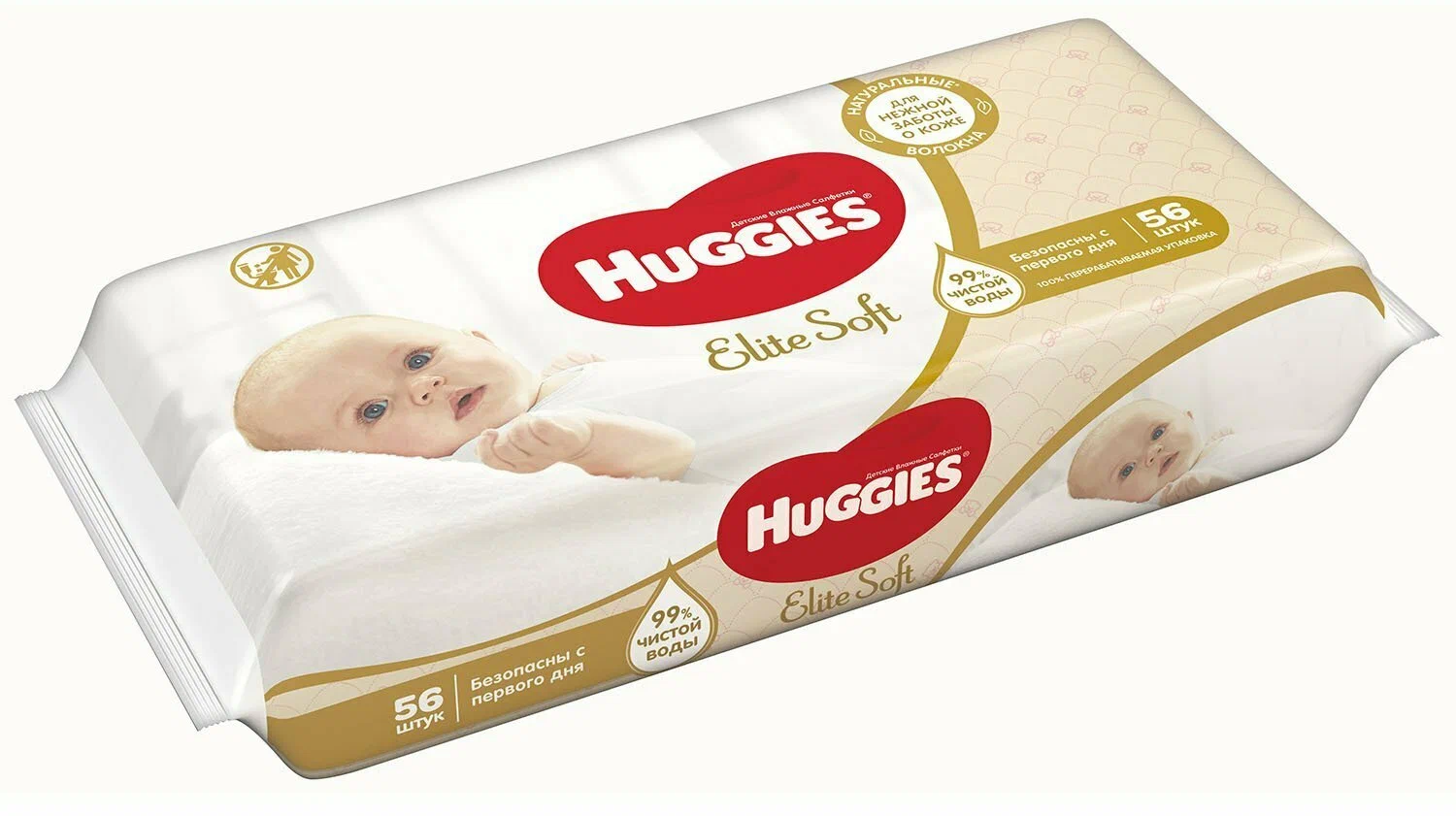 Влажные салфетки Huggies Elite Soft. Новые влажные салфетки Huggies Elite Soft такие нежные, что безопасны с первого дня жизни малыша. Салфетки содержат 99% чистой воды и не оставляют липких следов на коже малыша. Благодаря уникальной многослойной текстуре, салфетки Huggies Elite Soft прекрасно впитывают загрязнения. В большинстве случаев достаточно одной влажной салфетки, чтобы кожа малыша снова стала чистой.