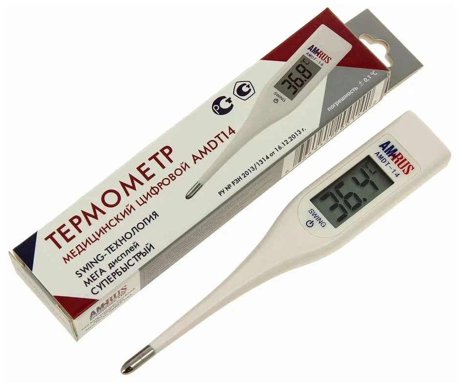 Используйте термометр для тела Amrus для точного измерения температуры. При измерении любым из трех методов прибор исключает погрешность более 0,1°С. В моменты плохого самочувствия надежный помощник всегда под рукой!