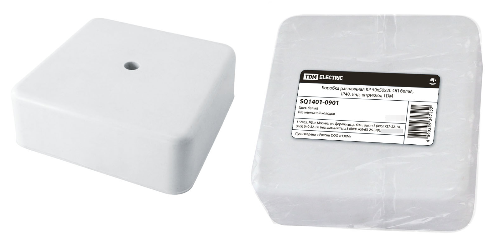 - Распределительная коробка TDM Electric КР, наружная белая 50х50х20мм, IP40, SQ1401-0901 - 1шт.