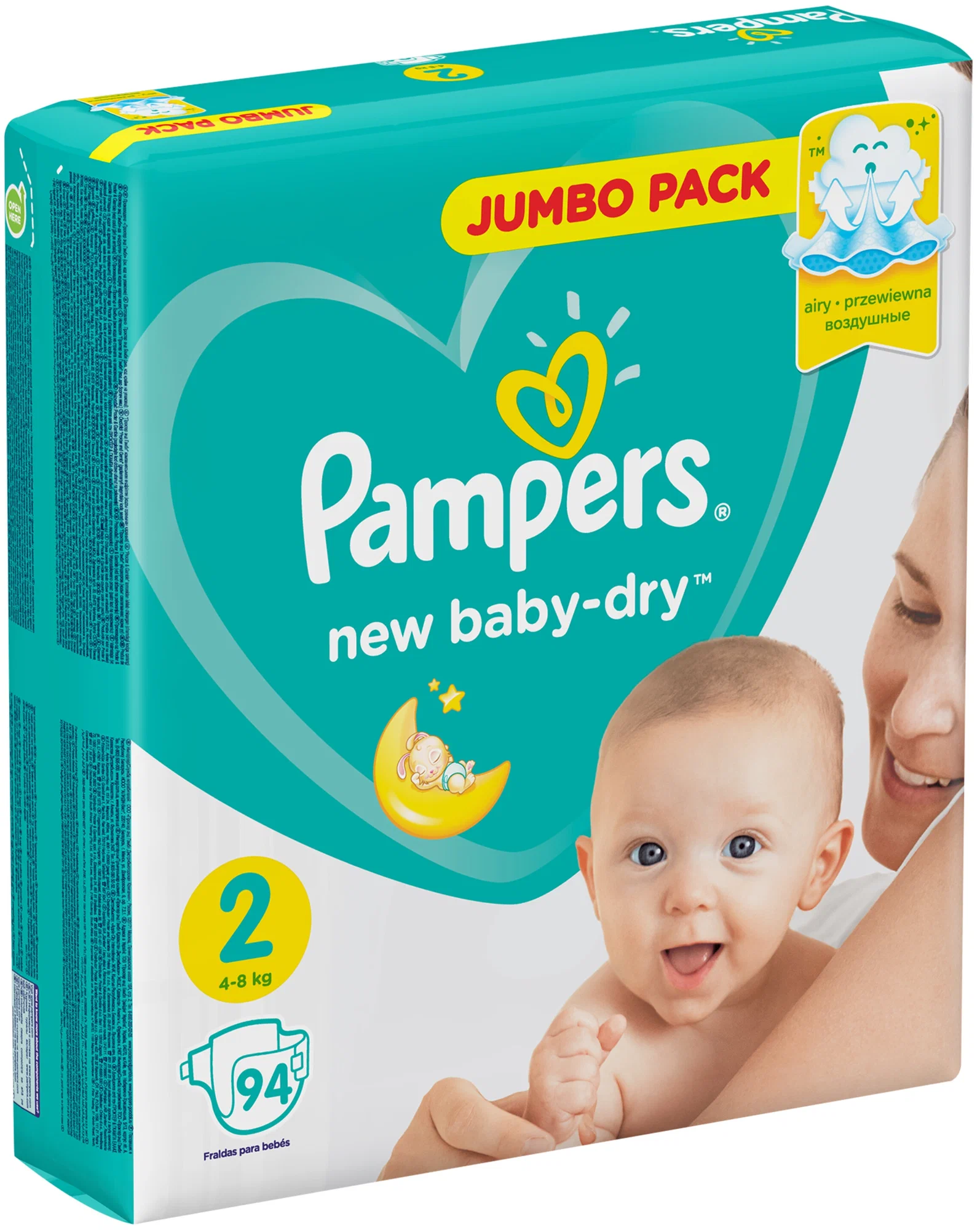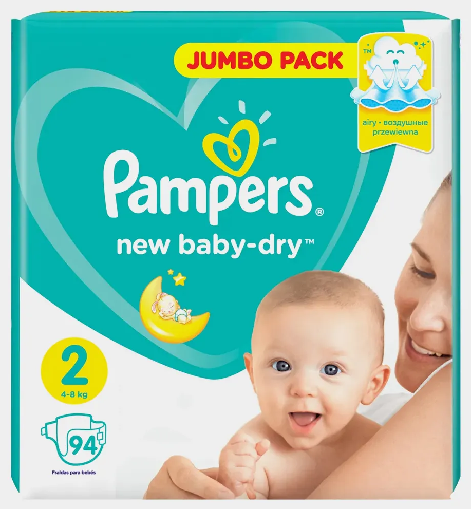 Подгузники Pampers / Памперс New Baby-Dry, с воздушными каналами, размер 2, для детей весом 4-8кг, в упаковке 94шт. / памперсы
