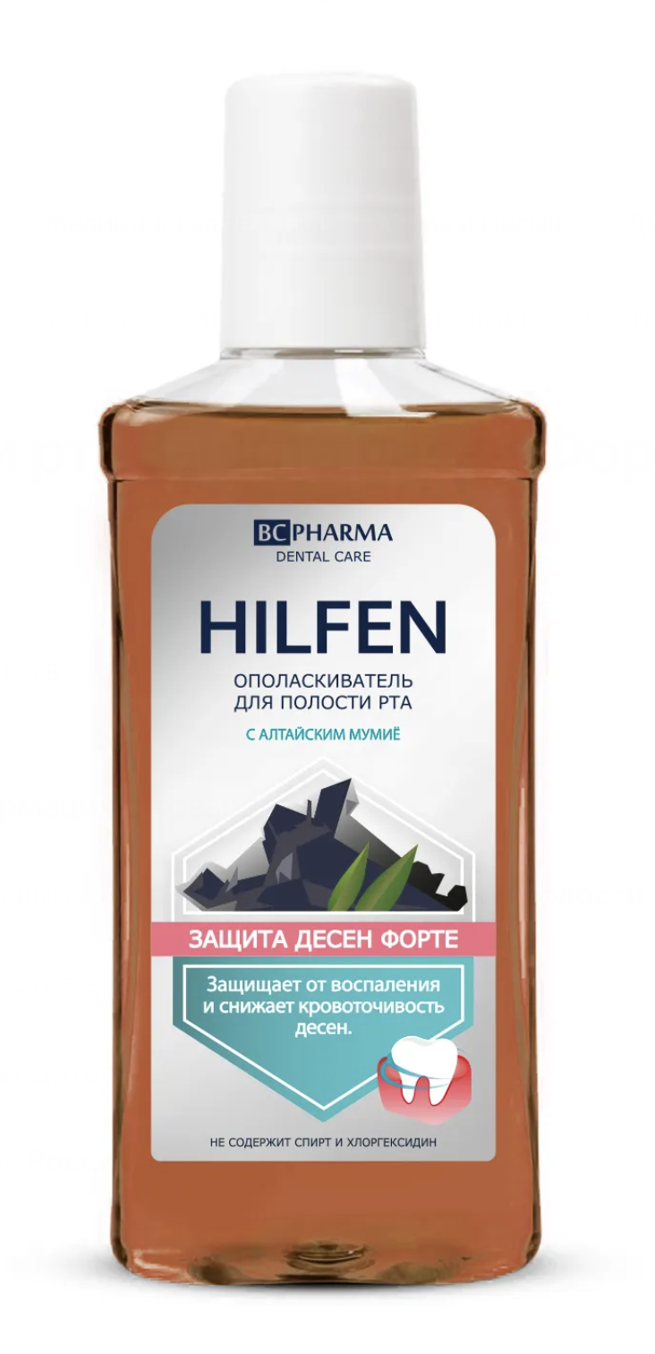 Профилактический ополаскиватель для полости рта ВС Нilfen Защита десен форте с мумиё сочетает в себе сразу 3 действия, позволяя достичь максимальной защиты всей полости рта.
