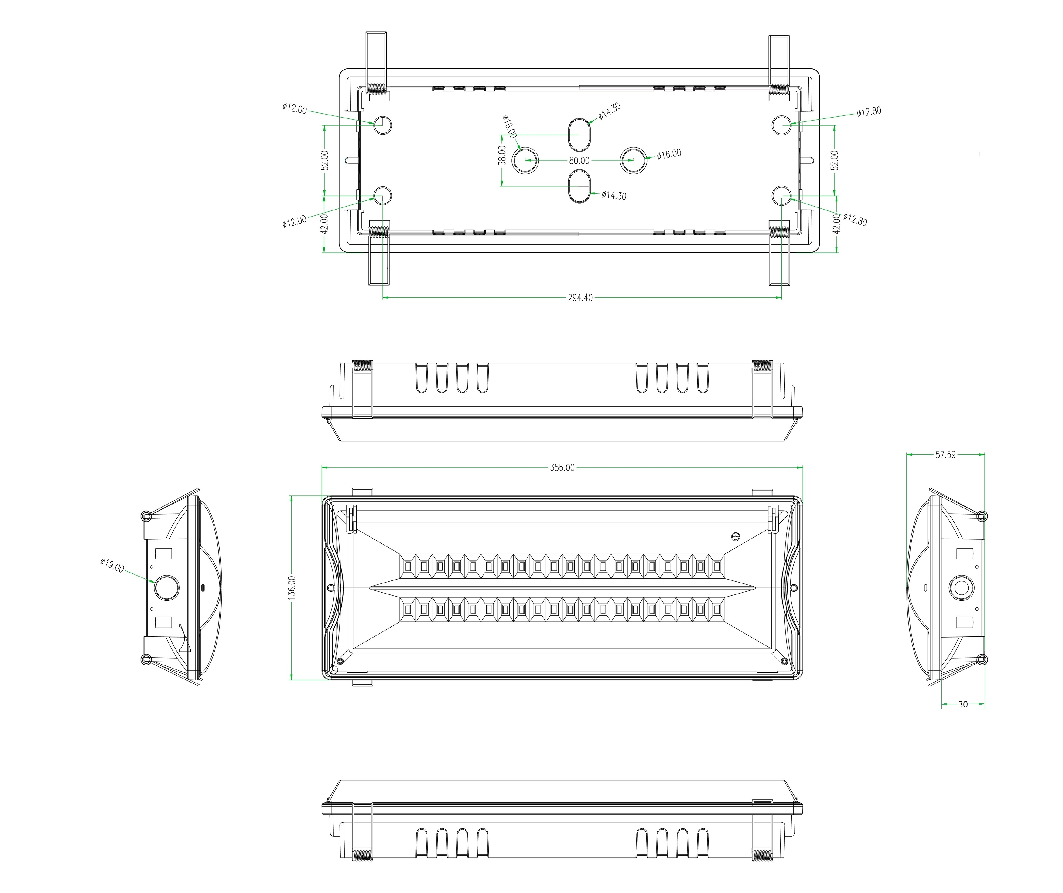 — Габариты, мм 355×136×58.