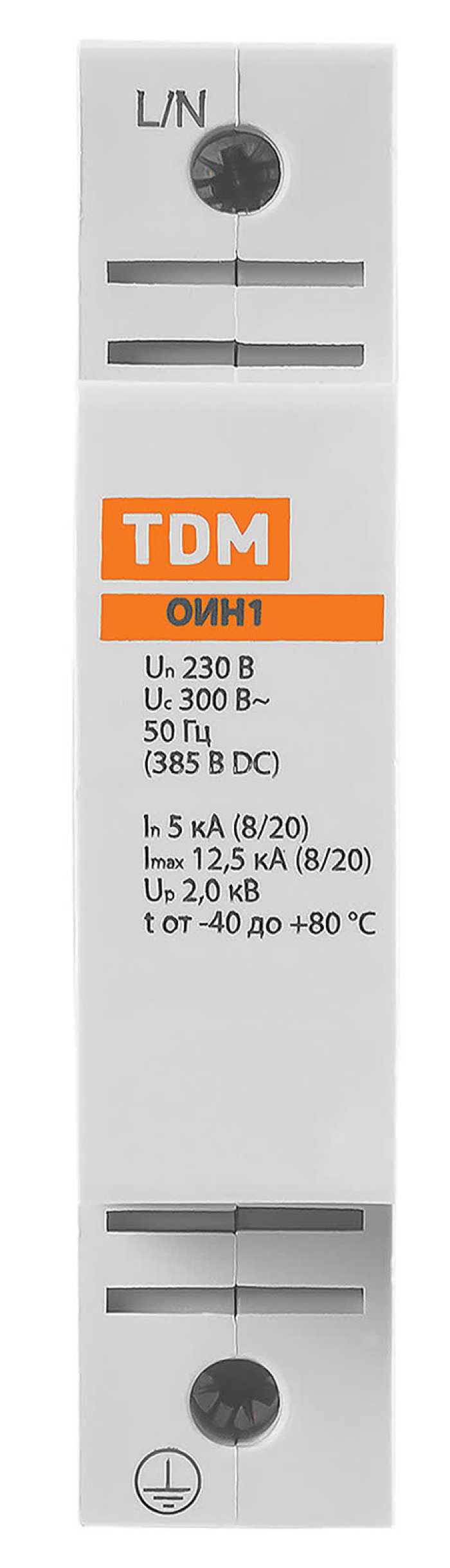 - Ограничитель перенапряжения TDM Electric ОИН1 модульный, однополюсной, 230В 5кА, 12.5кА, IP20 - 1шт.