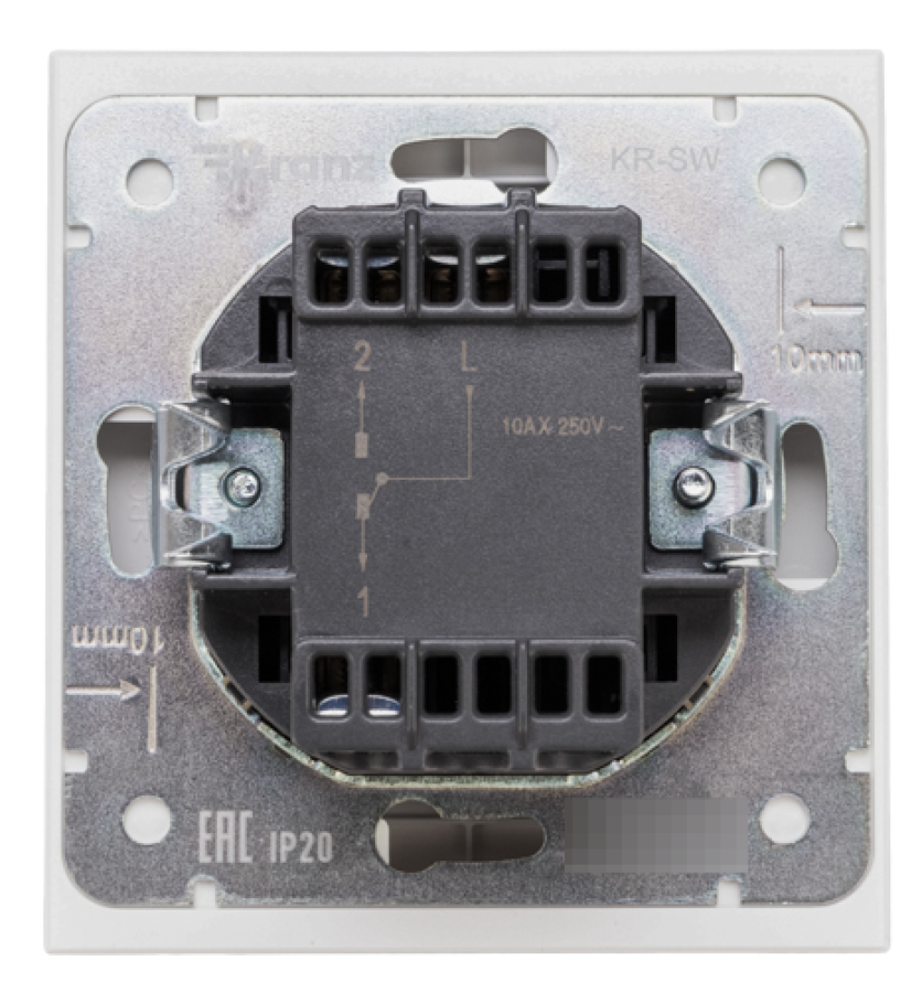Механизм одноклавишного переключателя скрытой установки KRANZ предназначен для подключения к электрической сети внутри помещений. Используется для управления светом из двух мест.