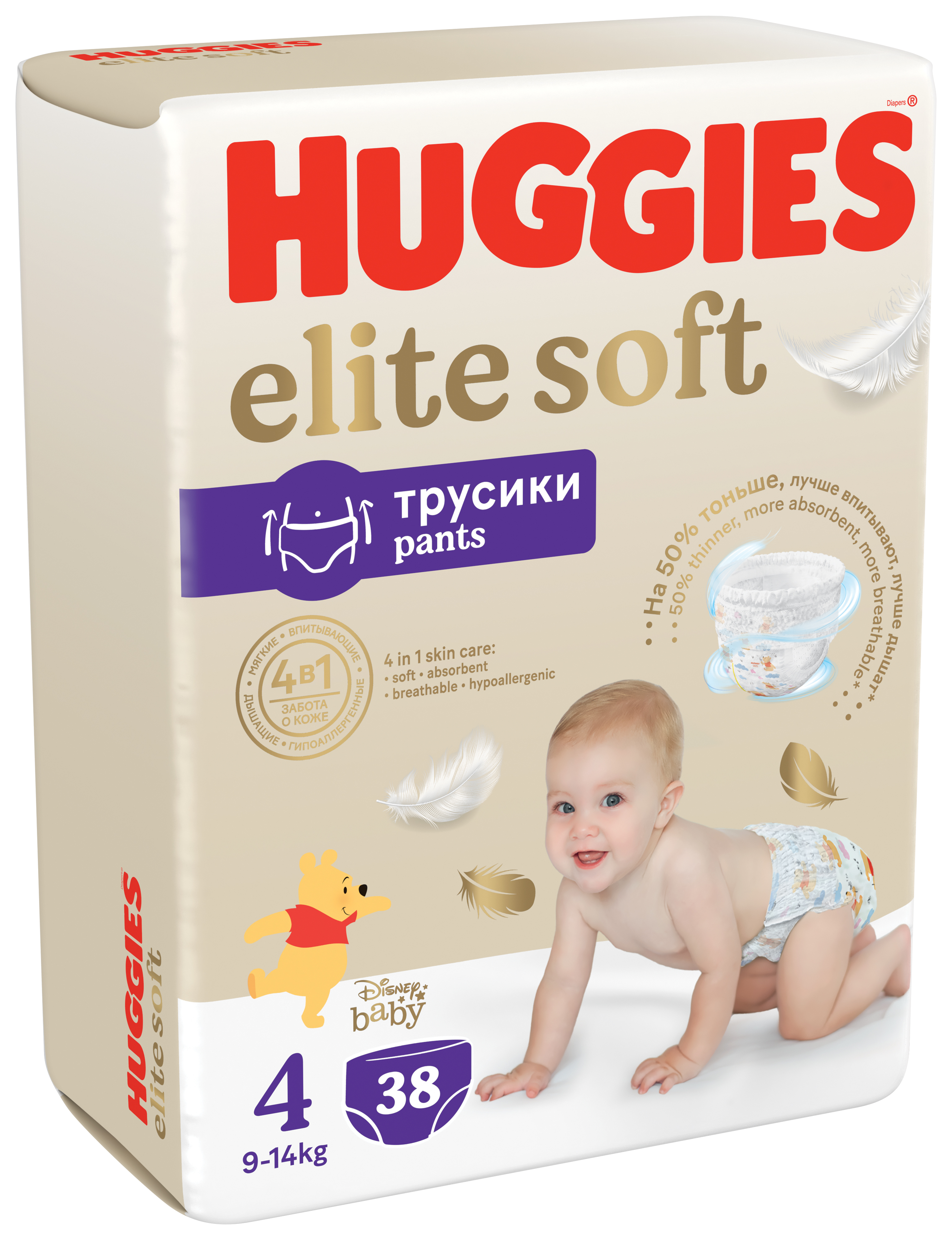 Подгузники-трусики Huggies / Хаггис Elite Soft для мальчиков и девочек, размер 4, для детей весом 9-14кг, в упаковке 38шт. / памперсы