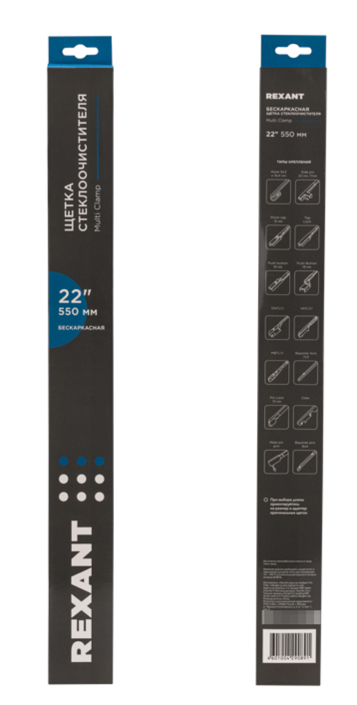 - Щетка стеклоочистителя бескаркасная REXANT Multi Clamp всесезонная, каучук с графитовым напылением, 550мм - 1шт.