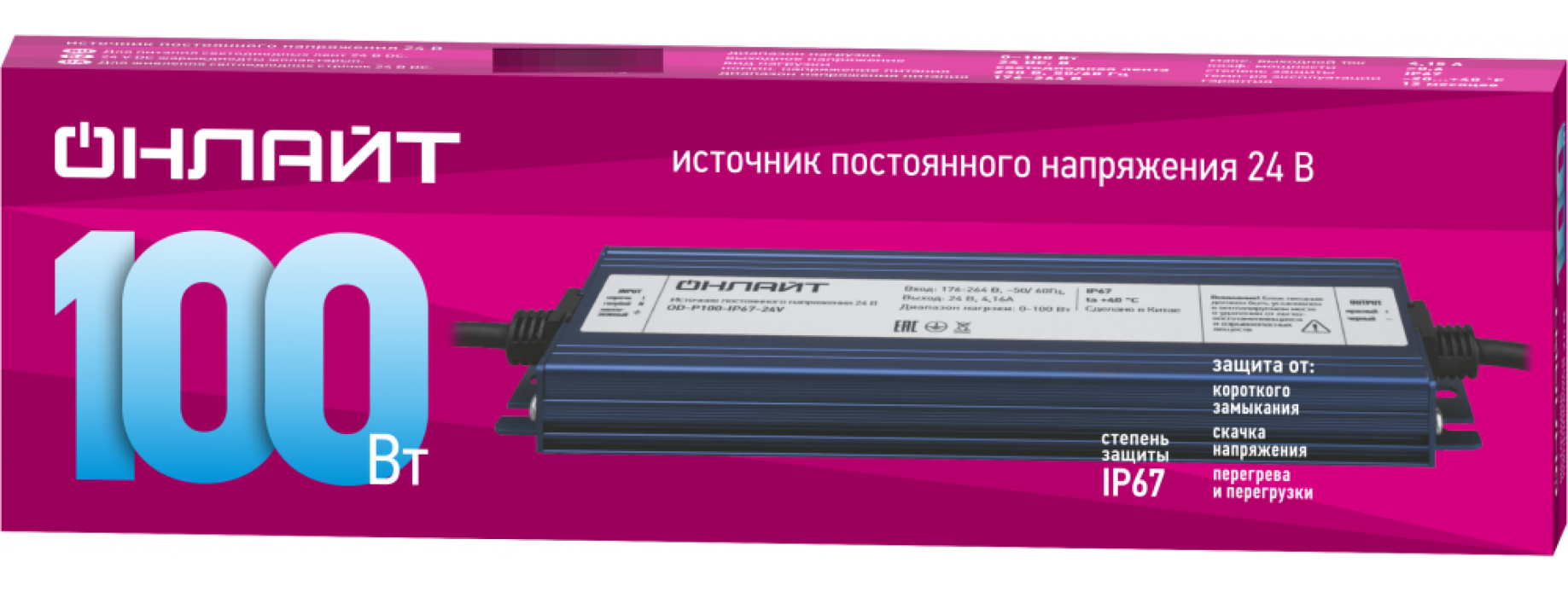 Драйвер для светодиодных светильников ОНЛАЙТ OD-P100-IP67-24V выделяется своими техническими характеристиками:
