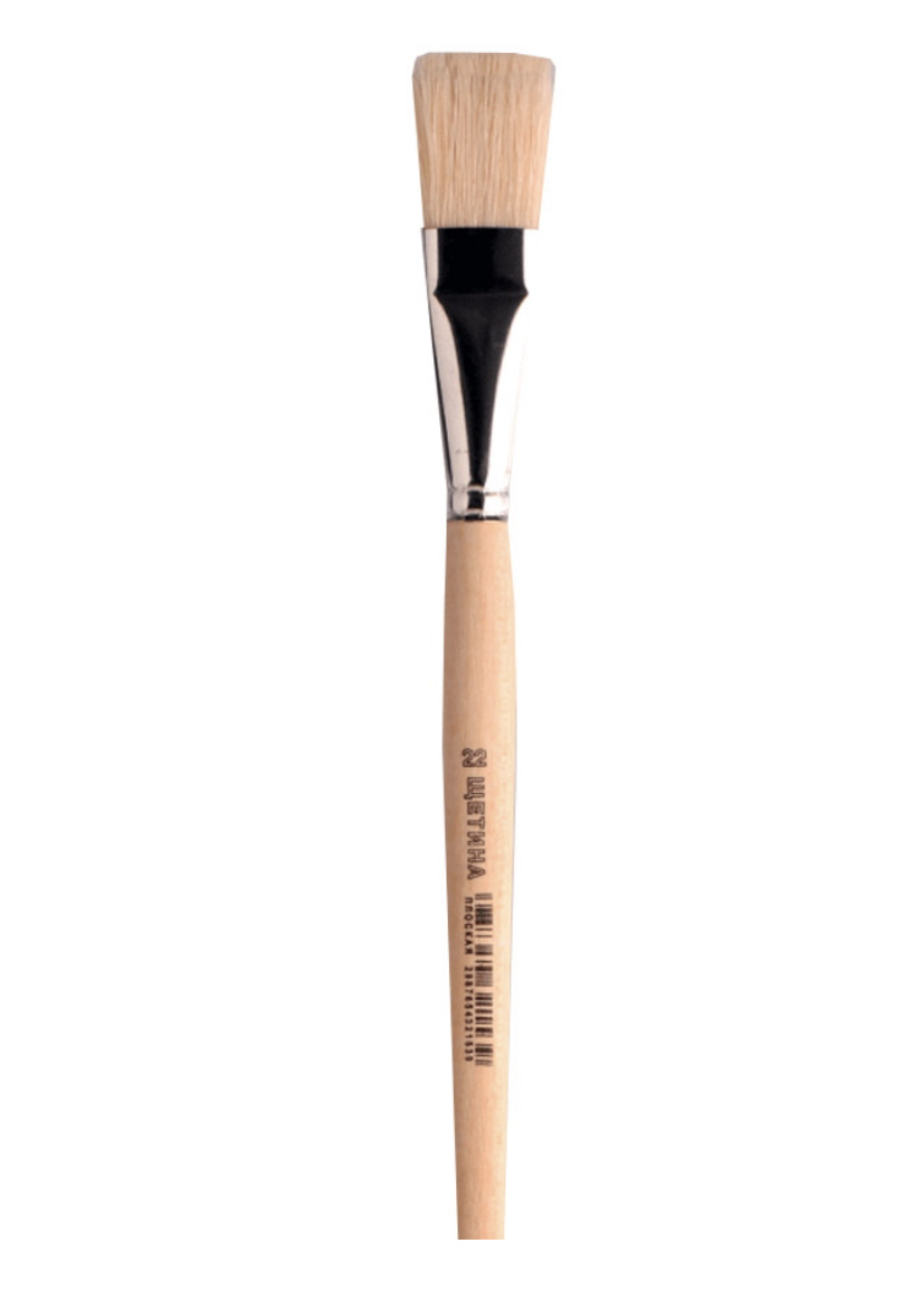 Маркировка на ручке содержит: номер кисти, вид волоса, тип кисти (круглая, плоская, оформительская), индивидуальный штрих-код.