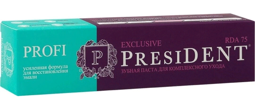 President Profi Exclusive Зубная паста предназначена для ежедневной гигиены полости рта с целью обеспечения длительной защиты от кариеса и укрепления зубной эмали.