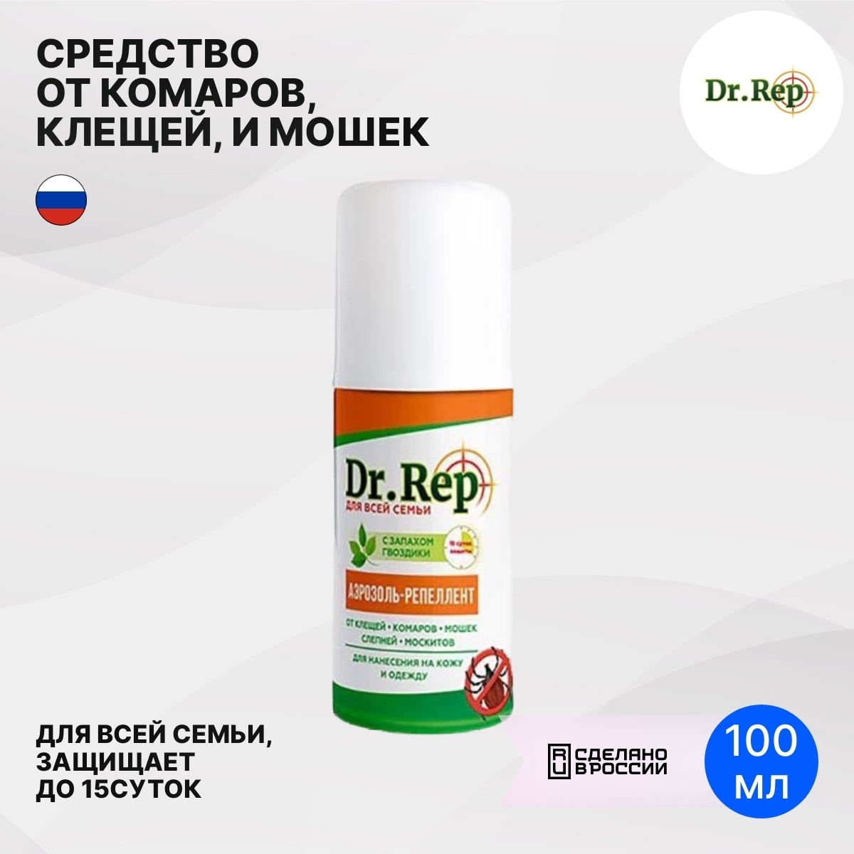 Средство от комаров и клещей Dr. Rep / Доктор Реп спрей репеллент 100мл