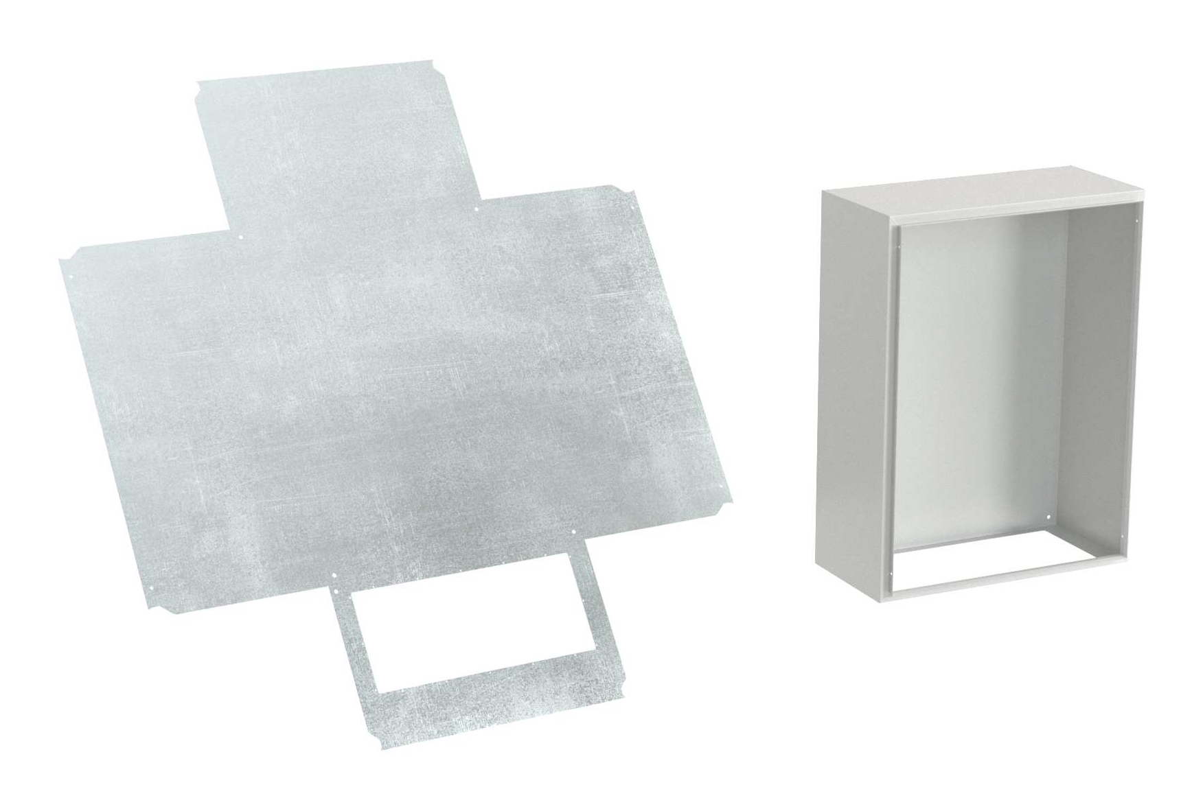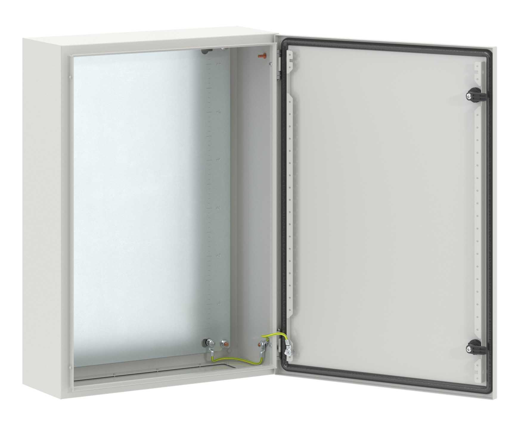 Корпус, дверь, фланец STE изготавливаются из стали толщиной 1,5 мм с атмосферостойким порошковым покрытием, цвет RAL7035. Монтажная плата — из оцинкованной стали 1,8 мм.