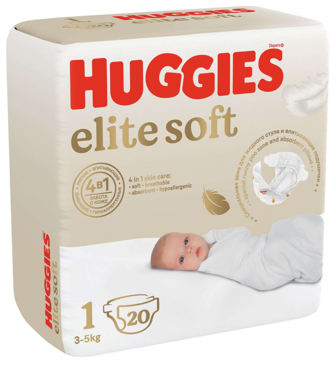 Подгузники Huggies / Хаггис Elite Soft для новорожденных, ультрамягкие, размер 1, для детей весом 3-5кг, в упаковке 20шт. / памперсы