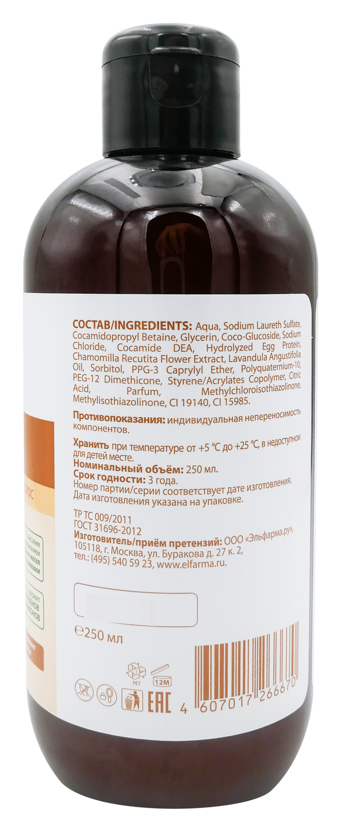 - Шампунь для волос женский содержит: Aqua, Sodium Laureth Sulfate, Cocamidopropyl Betaine, Glycerin, Coco-Glucoside, Sodium Chloride, Cocamide DEA, Hydrolyzed Egg Protein, Chamomilla Recutita Flower Extract, Lavandula Angustifolia Oil, Sorbitol, PPG-3 Cap…