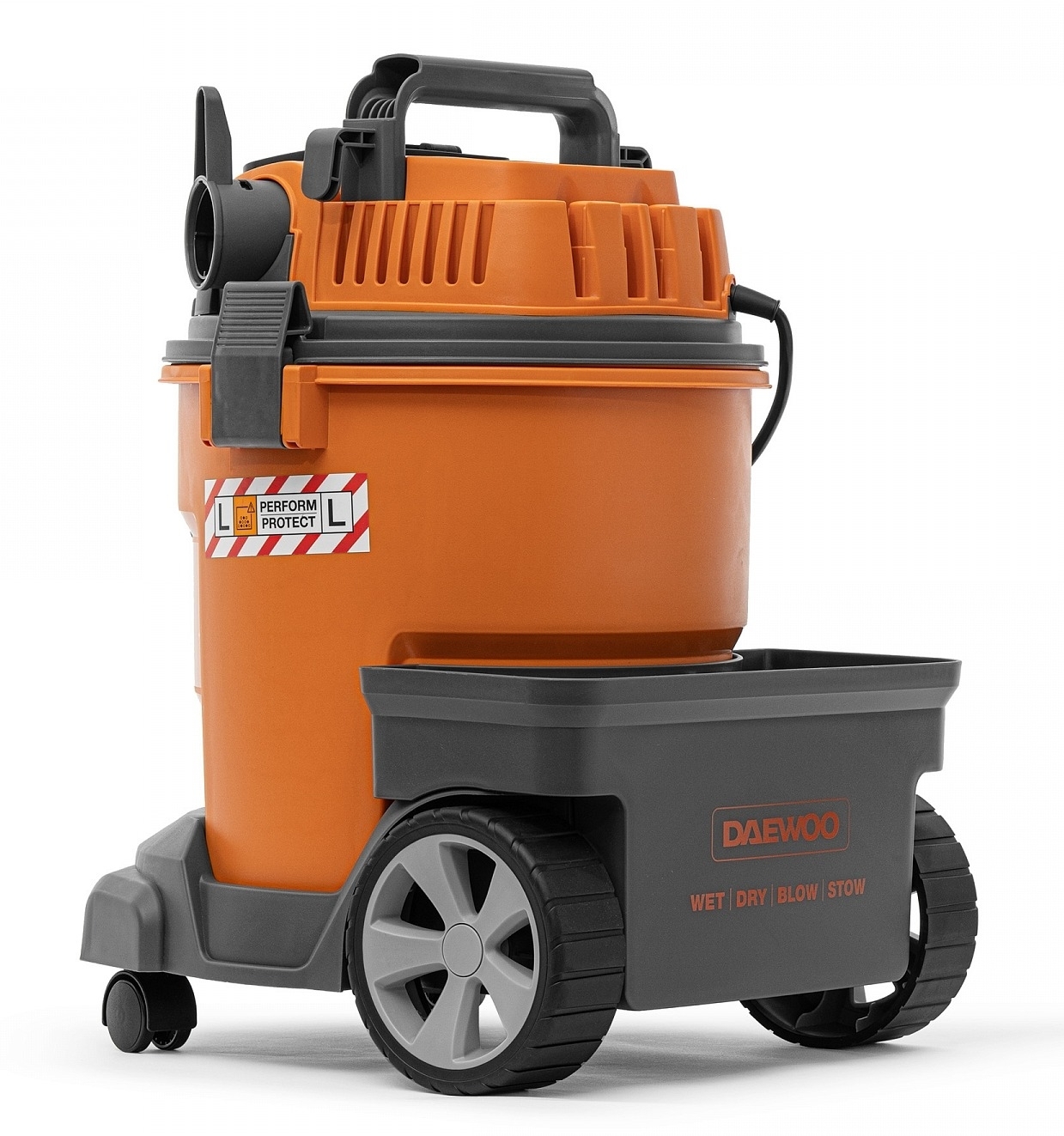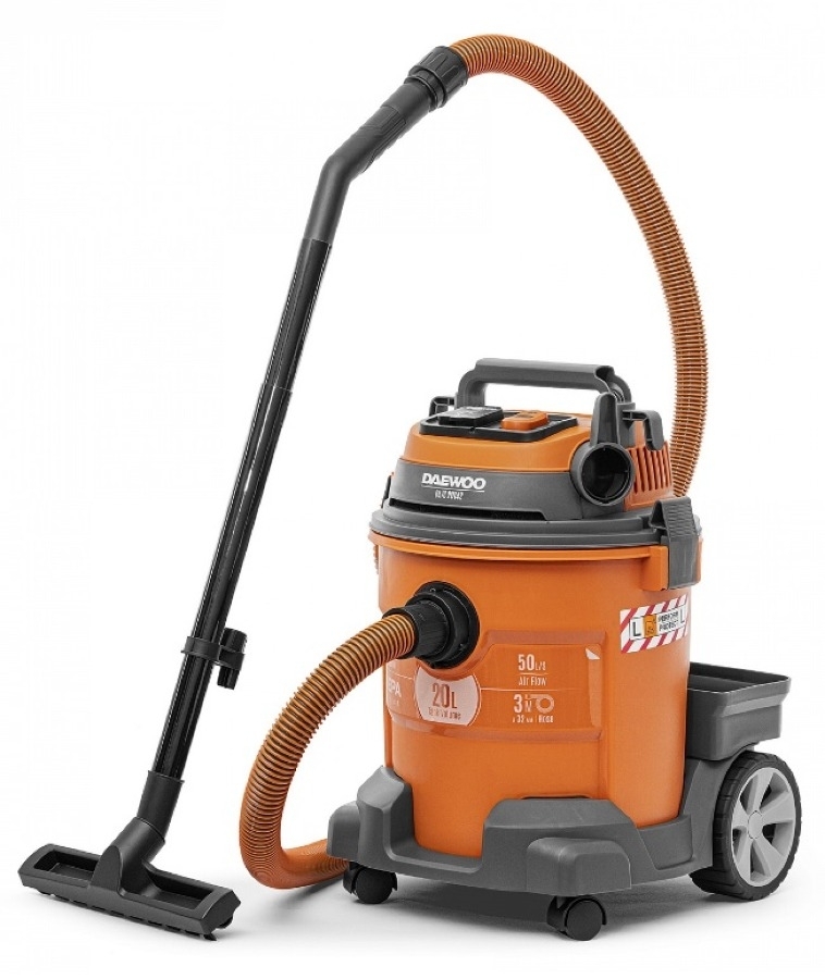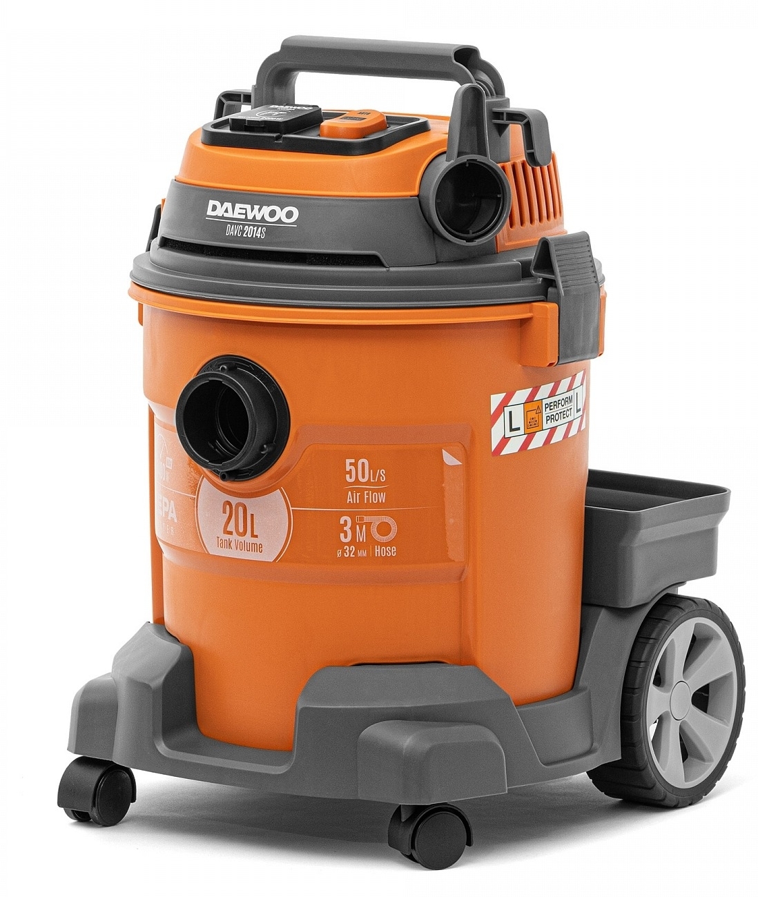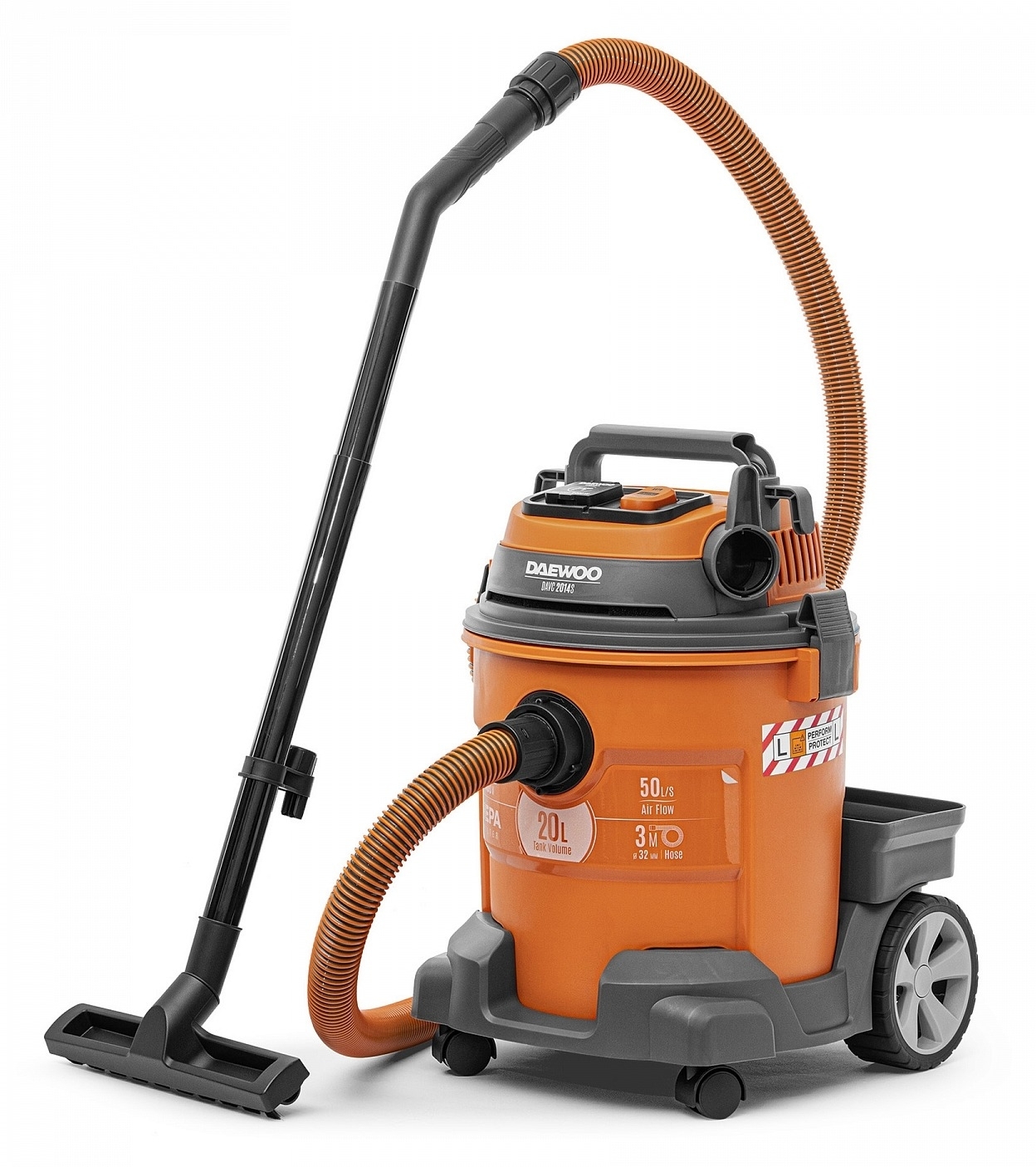 - Промышленный пылесос Daewoo DAVC 2014S с шлангом, сухая и влажная уборка, оранжевый, объем бака 20л, 415х370х505мм, 1400Вт - 1шт.