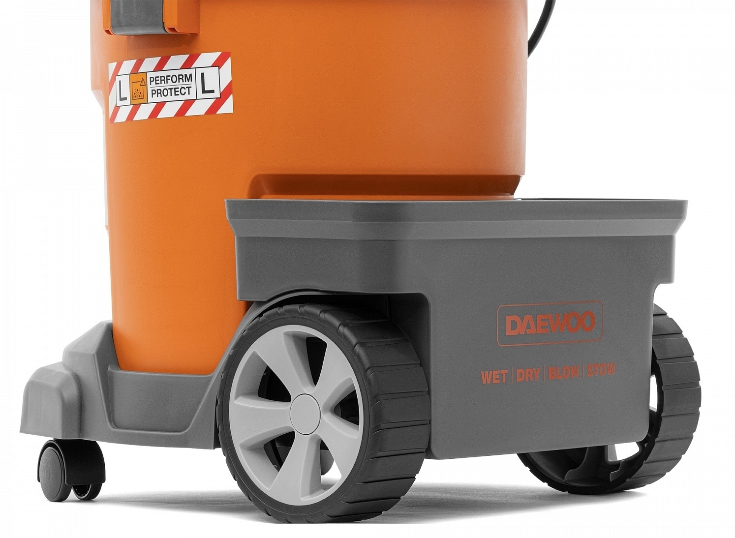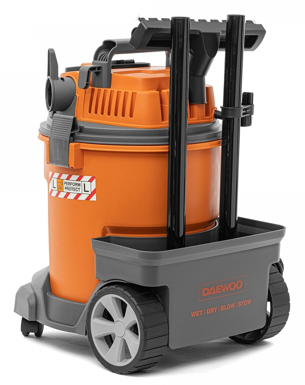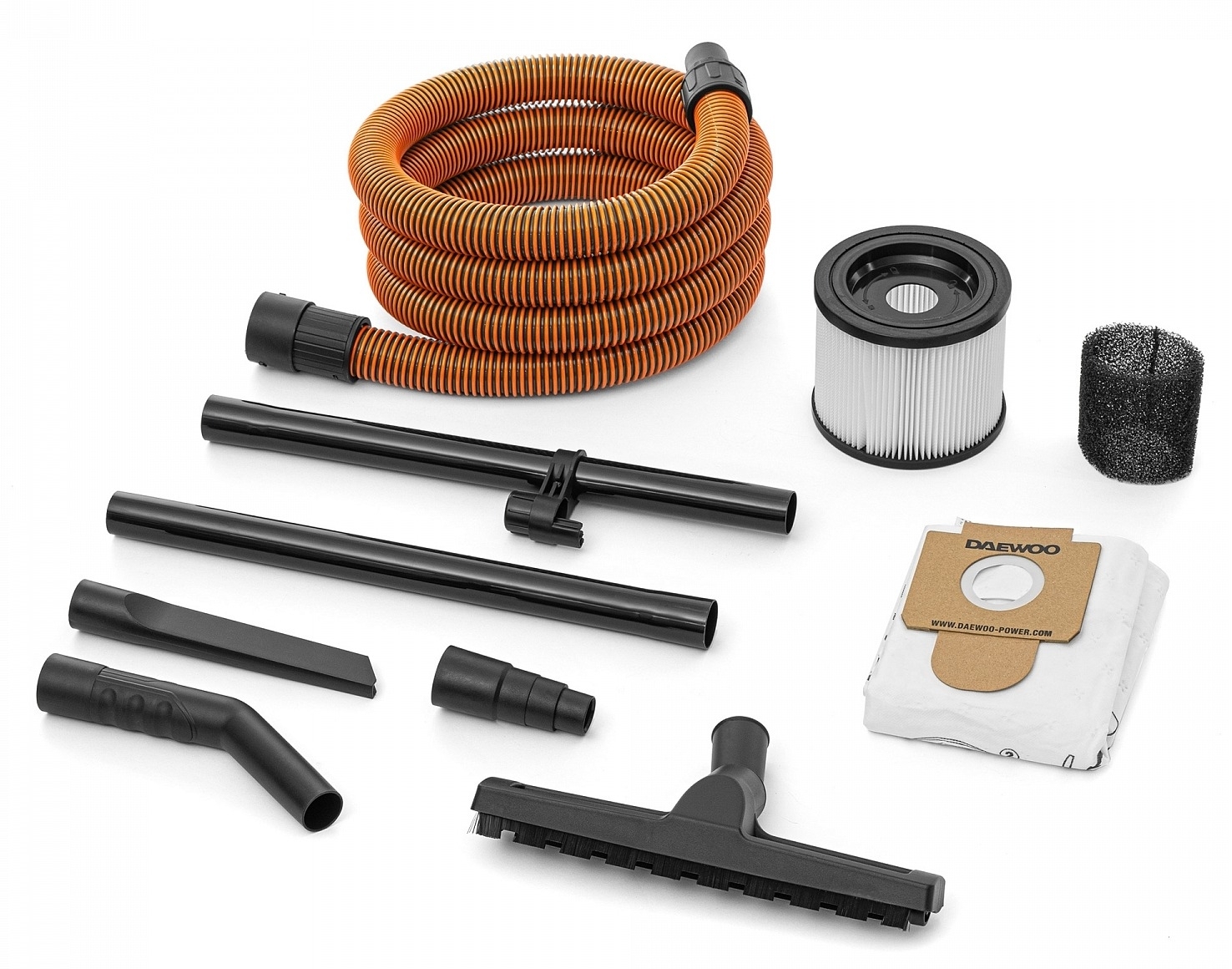 - Промышленный пылесос Daewoo DAVC 2014S с шлангом, сухая и влажная уборка, оранжевый, объем бака 20л, 415х370х505мм, 1400Вт - 1шт.