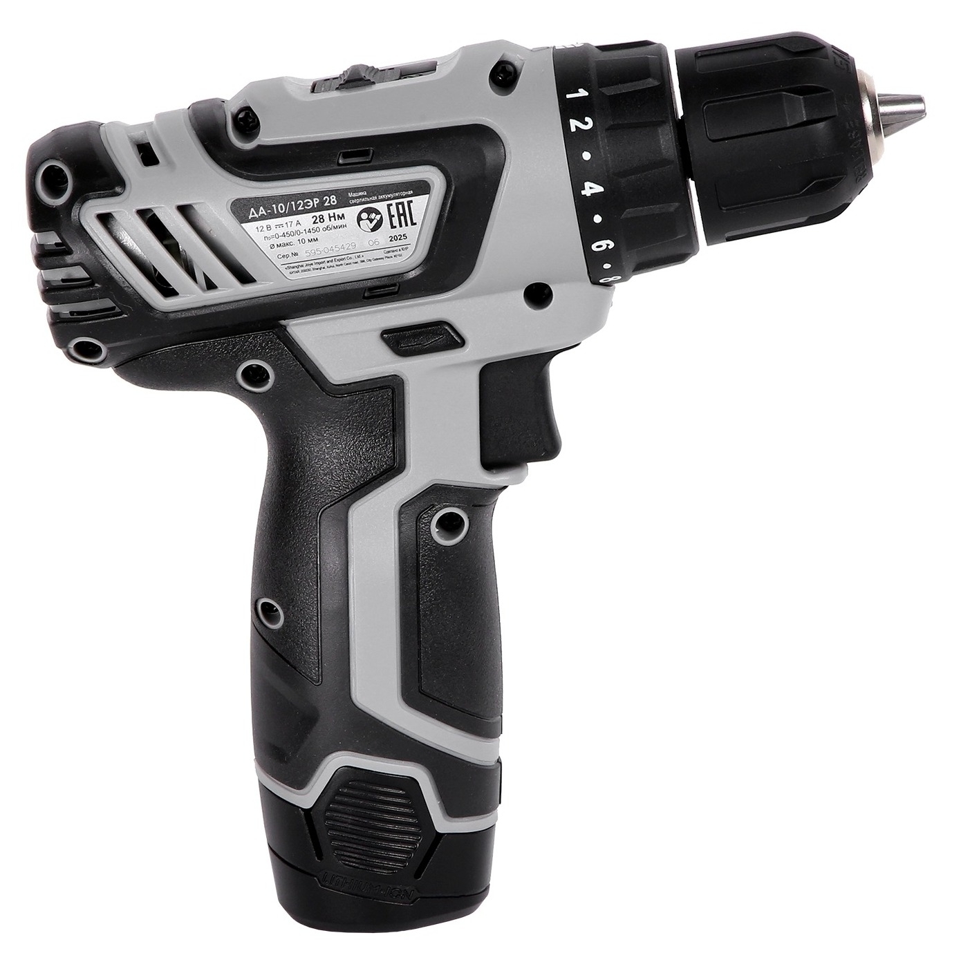 Компактная двухскоростная аккумуляторная дрель-шуруповерт ИНТЕРСКОЛ ДА-10/12ЭР 28 предназначена для решения разнообразных задач в домашнем хозяйстве, частной мастерской, на даче, в гараже, при выполнении строительно-ремонтных работ и т.д. Модель обладает двухскоростным планетарным редуктором с металлическими шестернями, механическим переключением диапазонов скоростей и удобной регулировкой оборотов усилием нажатия на кнопку пуска. Это позволяет уверенно закручивать и откручивать шурупы, саморезы, винты, болты, гайки и прочий крепеж на 1-й (пониженной) передаче, а также эффективно сверлить отверстия в различных материалах – древесине и ее производных, металлах, пластике, композитах и т.д. на 2-й (повышенной) передаче.