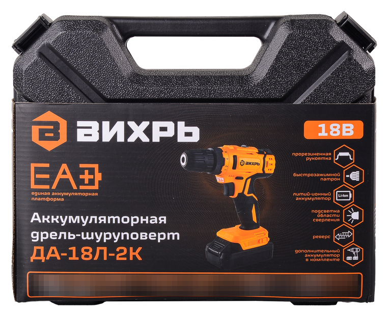 Дрель-шуруповерт ВИХРЬ ДА-18Л-2К используется для сверления отверстий в деревянных, пластмассовых и металлических изделиях или для работы в качестве шуруповерт. Модель оснащена 2 аккумуляторами и кейсом, незаменима для людей, постоянно использующих дрели-шуруповерты в быту. Электроинструмент является аналогом модели ДА-18Л-2, отличие: есть кейс и второй аккумулятор. Прорезиненная рукоятка обеспечивает удобное и надёжное удержание инструмента в руке во время работы. Быстрозажимной патрон облегчает замену рабочей оснастки. Двухскоростной редуктор для удобства ведения различных работ. Реверсивный механизм предназначен для быстрого изъятия сверла из материала в случае застревания, выкручивания или ослабления крепежа.