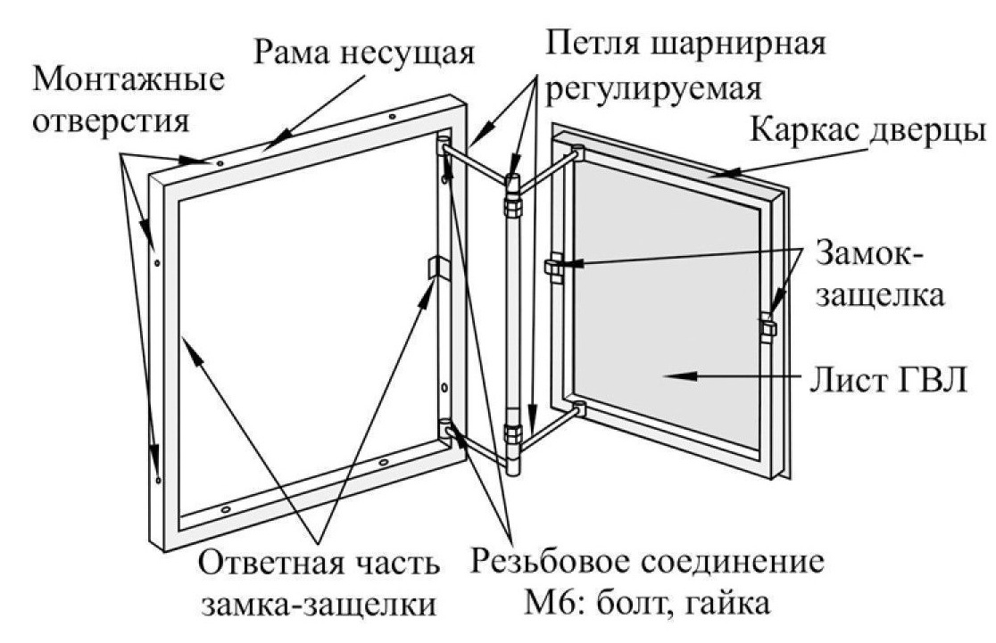 — Заполнение дверцы Гипсоволокнистый лист KNAUF 12,5 мм.