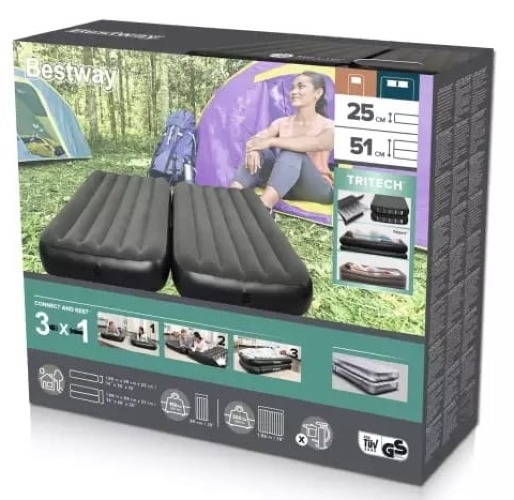 Необходимо удобное решение для организации спального места? Надувной матрас Bestway Connect and Rest 3 в 1 с размерами 188×99 см создаст комфортную зону. Высота конструкции 25 см обеспечивает полноценный отдых.