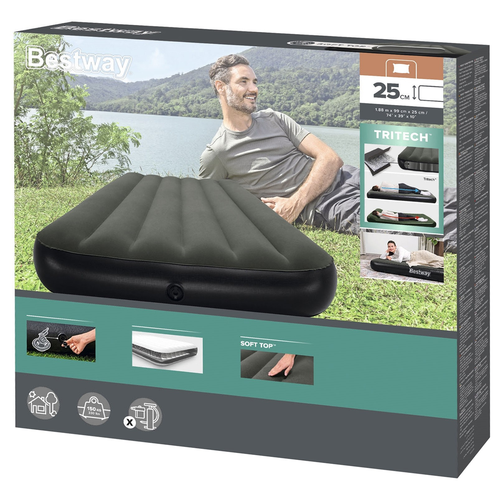 Матрас надувной Bestway / Бествей Tritech Twin 6713L полуторный, из ПВХ, черный, 188×99×25см / товары для дома и отдыха