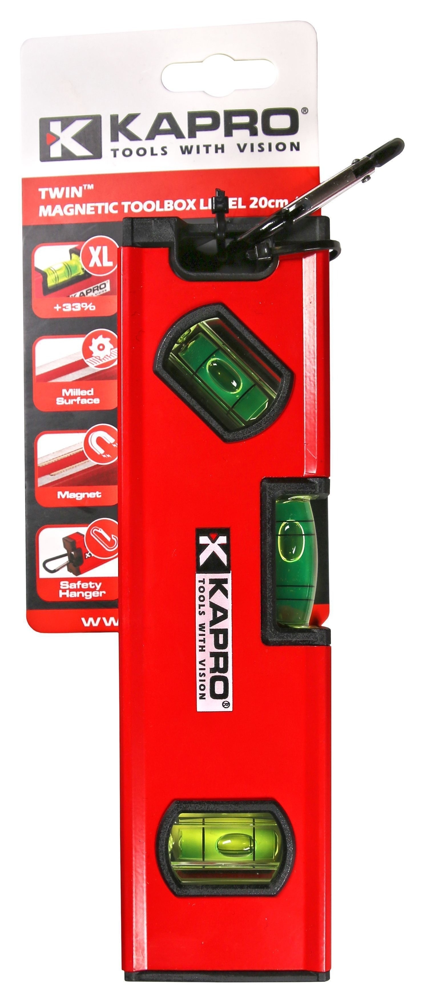 Уровень строительный KAPRO / Капро Twin магнитный, с карабином, 3 колбы из полиакрила, алюминиевый, 20см / измерительный инструмент