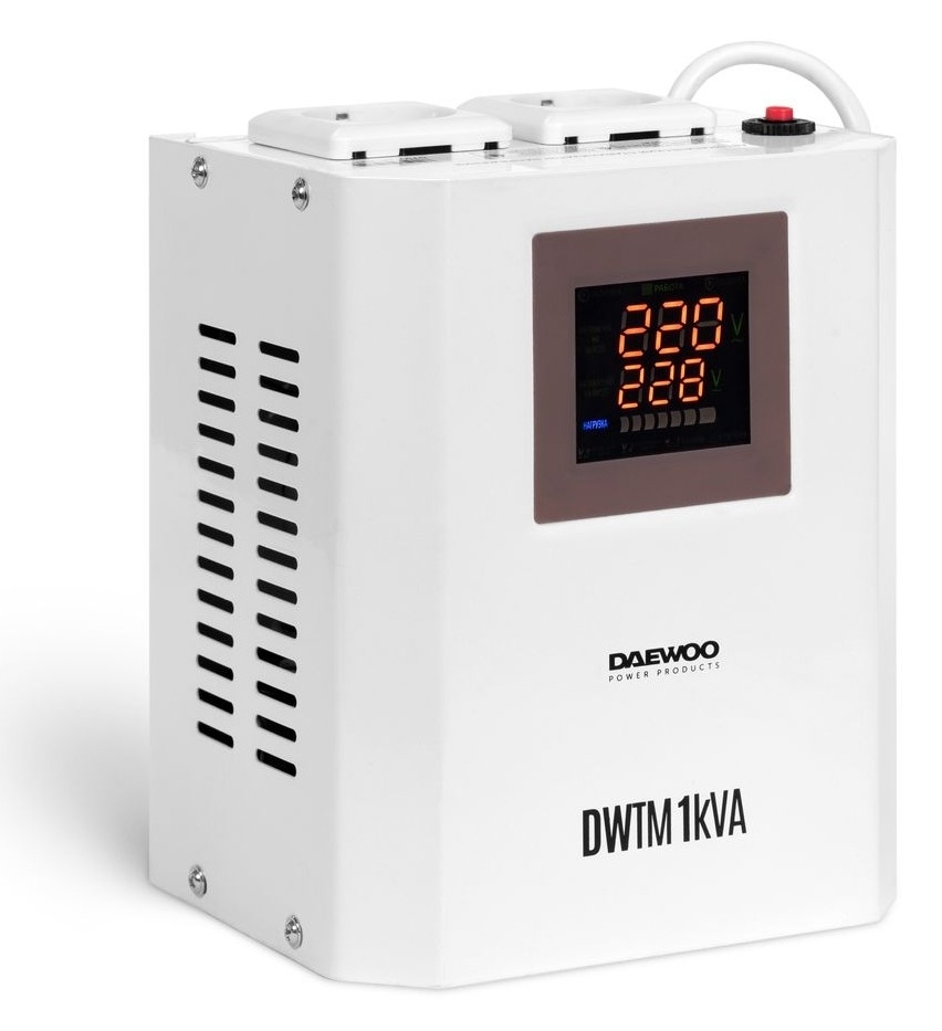 Стабилизатор напряжения DAEWOO / Дэу DW-TM1kVA настенный, цифровой, однофазный, 140-270В, погрешность 8%, 50Гц, IP20, 1кВт / электрика