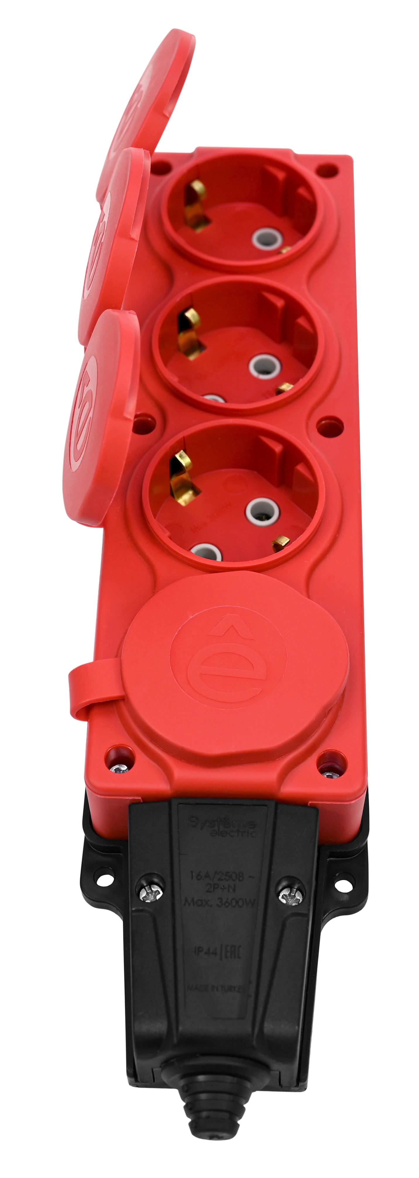 - Блок розеток Systeme Electric MultiSet 2К+З, 4 гнезда 16А 250В IP44, наружной установки с крышкой, каучук красный, MST4124RD - 1шт.