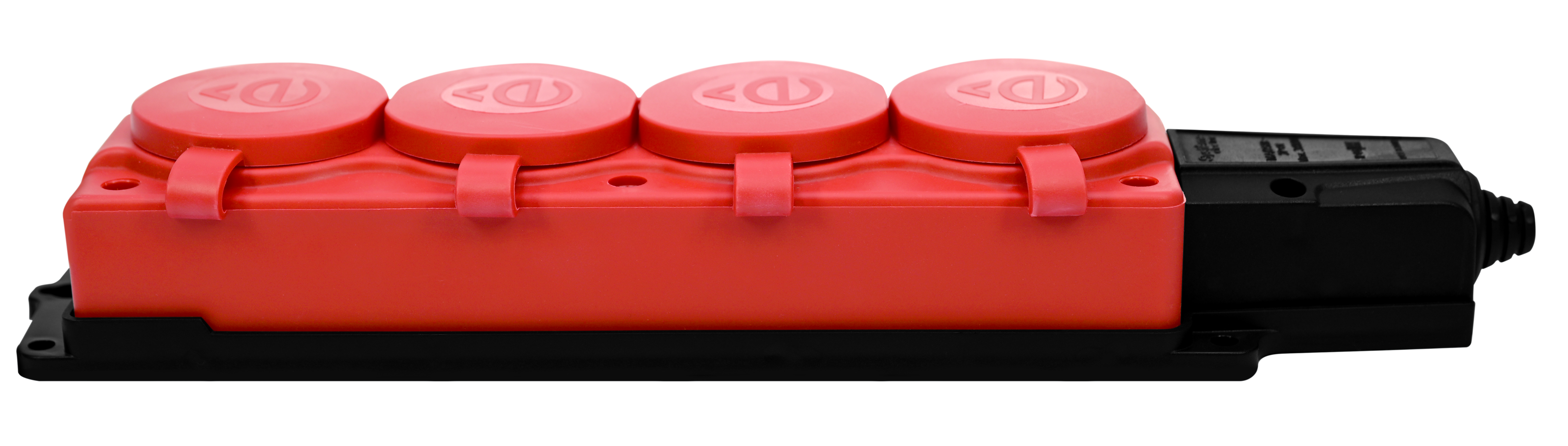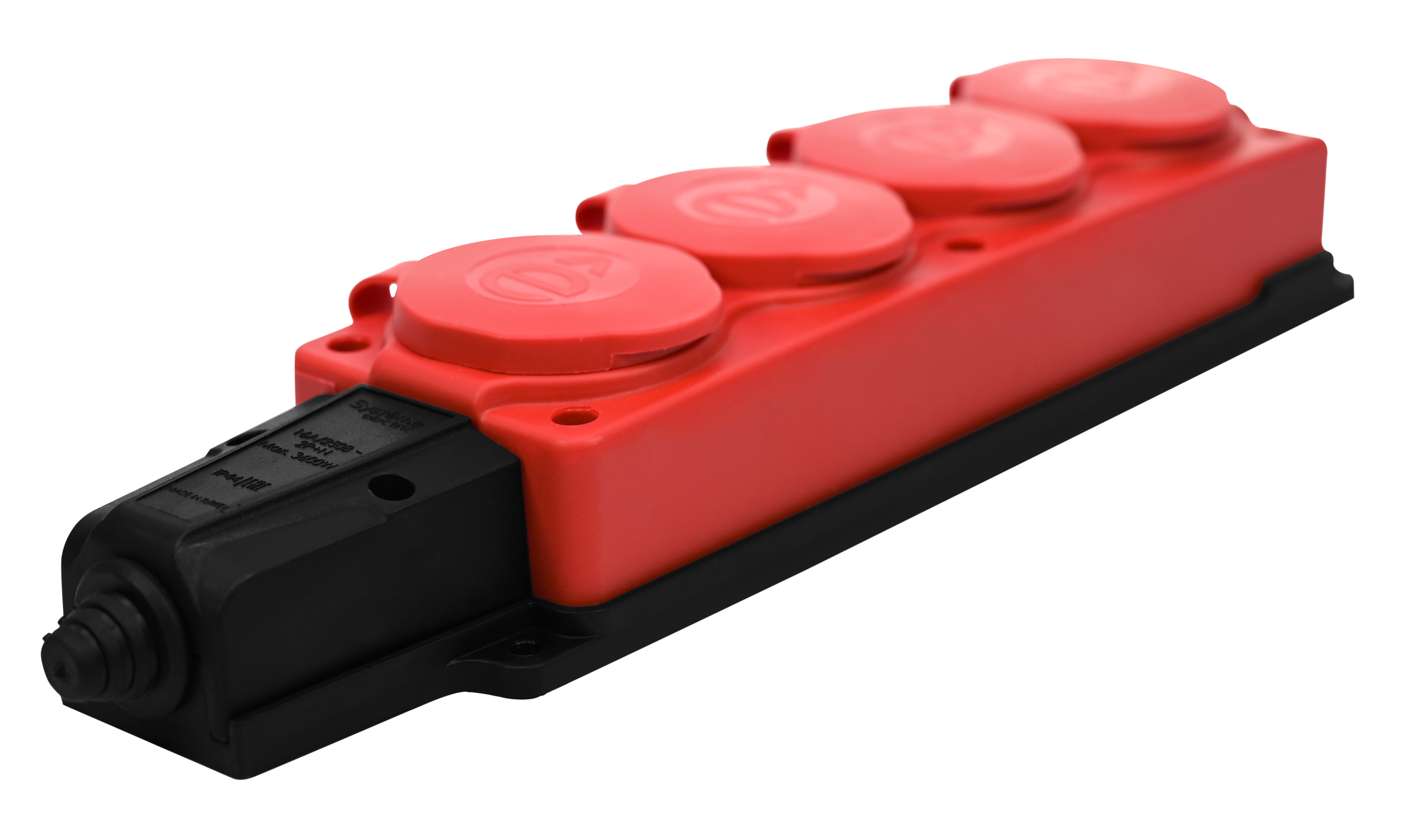 Блок розеток Systeme Electric / Систем Электрик MultiSet 2К+З, 4 гнезда 16А 250В IP44, наружной установки с крышкой, каучук красный, MST4124RD / колодка электрическая для удлинителя