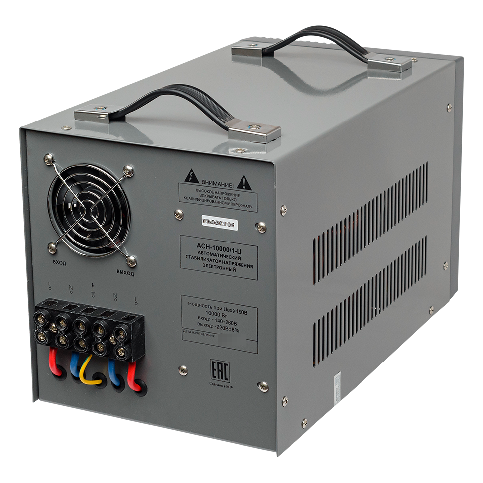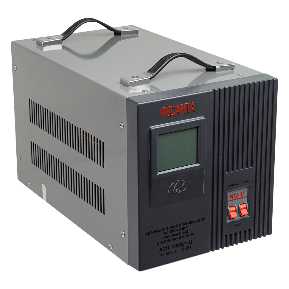 Стабилизатор напряжения АСН-10 000/1-Ц «Ресанта» предназначен для обеспечения качественного электропитания и долгой работы различных бытовых устройств в условиях нестабильного напряжения в сети.