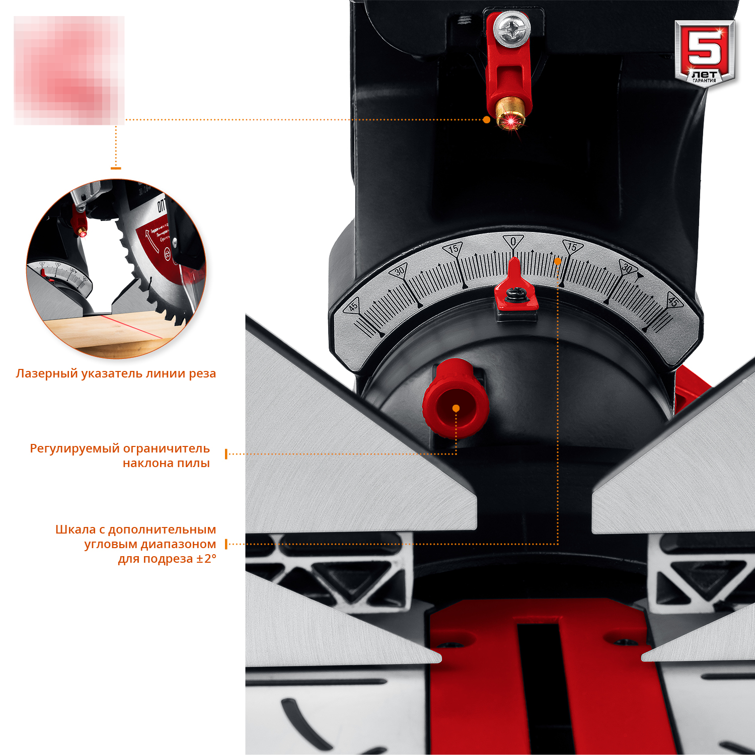 — Лазерная направляющая для точного пиления.