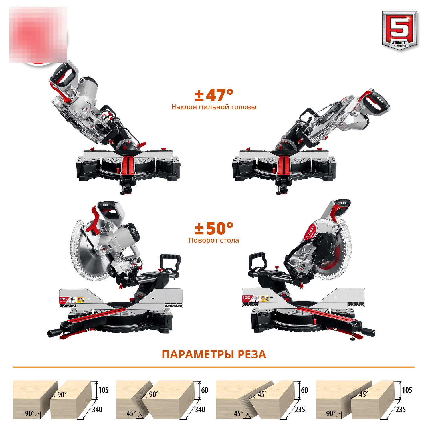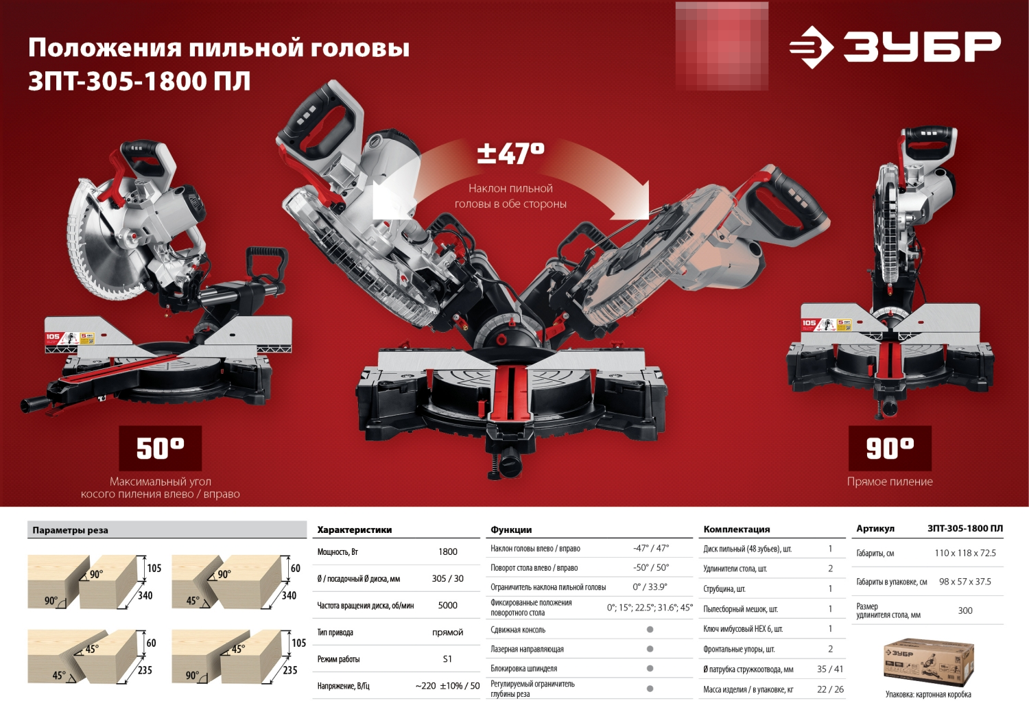 — Мощная универсальная пила для всех видов пиления: прямого, косого, под наклоном и комбинированного.