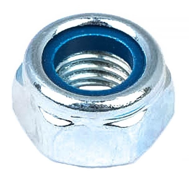 — Монтаж: На установленный болт накрутить гайку. В момент, когда гайка накручивается на болт, болтовая резьба начинает нарезать внутреннюю поверхность дополнительного стопорного кольца, благодаря чему в системе «болт-гайка» возникает эффект деформации, который обладает слегка подпружинивающим действием, что в свою очередь, практически исключает возможность самопроизвольного отвинчивания гайки.