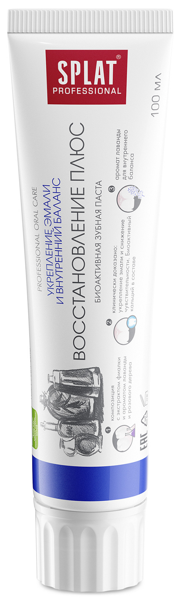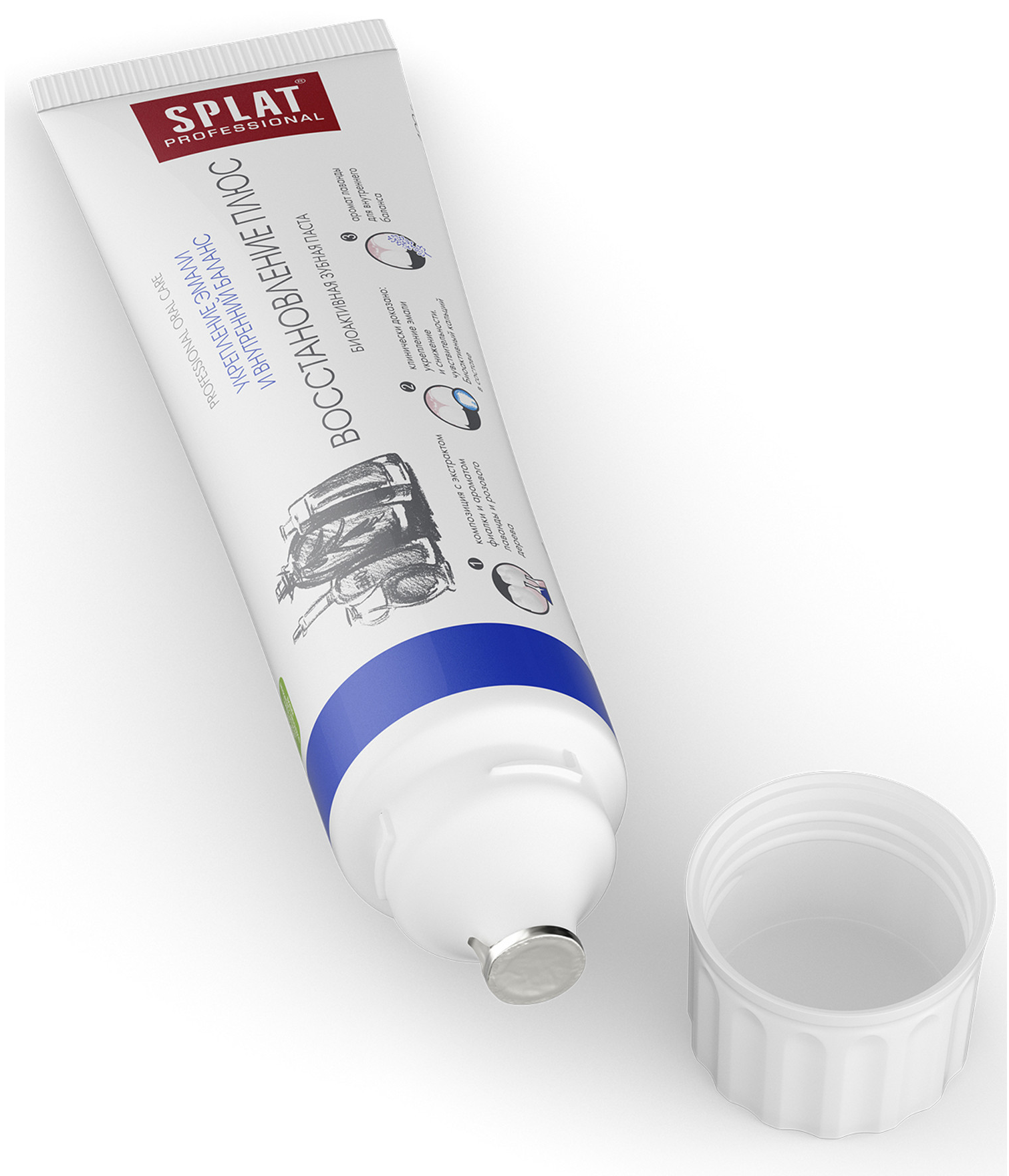Splat Зубная паста Professional Восстановление плюс гелевая с эфирными маслами укрепляет эмаль и защищает зубы. Паста зубная предназначена для ежедневной гигиены полости рта с целью обеспечения длительной защиты от кариеса, снижения растворимости и укрепления зубной эмали.