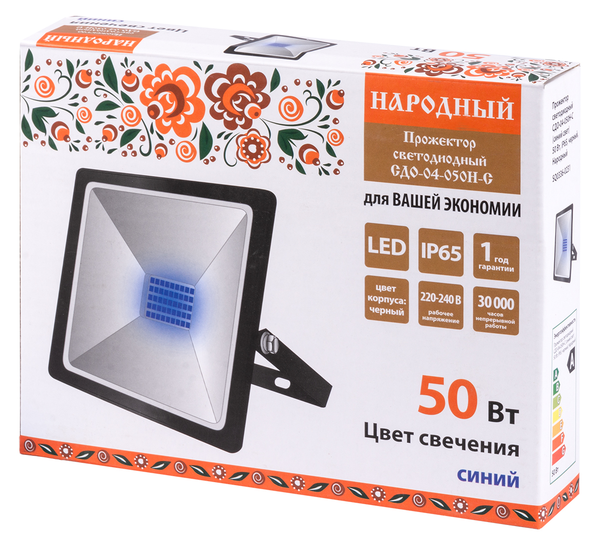 - Прожектор светодиодный TDM Electric СДО-04-050Н-С Народный с синим светом, 50Вт IP65, размер 150х170х28мм, черный SQ0336-0231- 1шт.