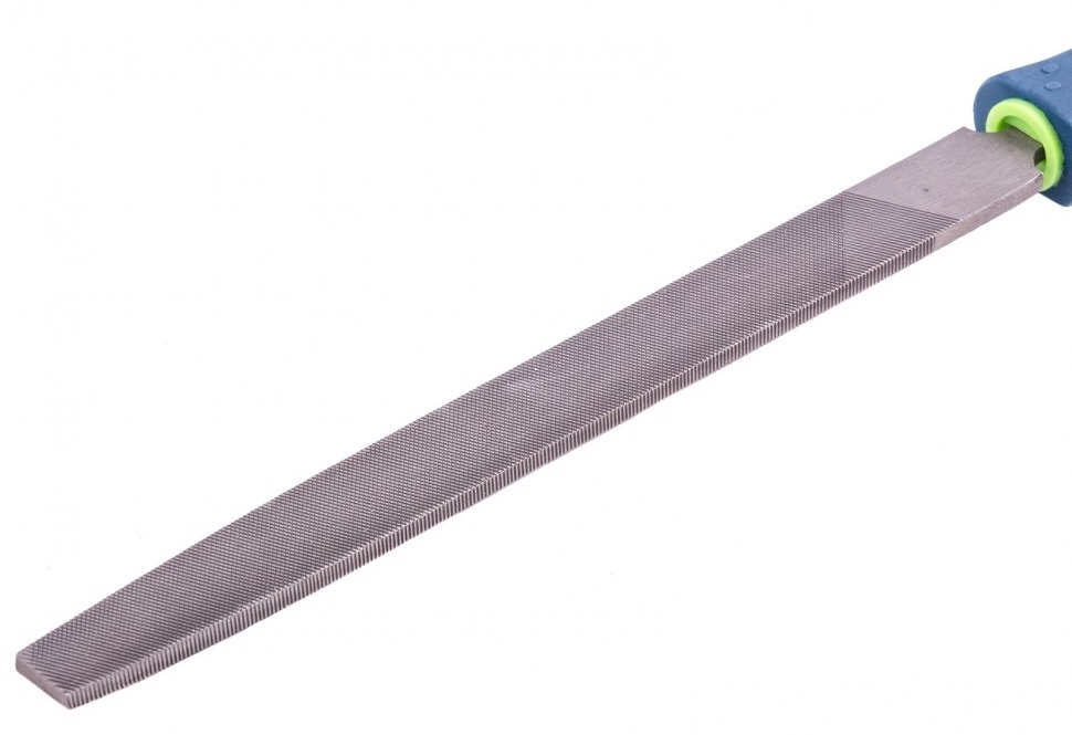Плоский напильник используют для обработки плоских наружных и внутренних, а также наружных выпуклых поверхностей. Насечка № 2 — личные напильники, у которых на 1 см длины приходится 13-25 зубьев (средняя насечка), применяют после того, как основной слой металла, подлежащий опиливанию, уже снят с детали при помощи драчевого напильника, личный напильник снимает слой металла толщиной 0,02-0,08 мм. Напильник имеет удобную двухкомпонентную рукоятку.
