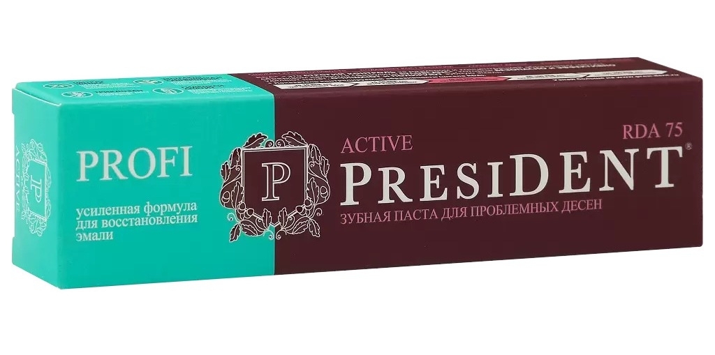 President Profi active Зубная паста с высокоэффективным гидроксиапатитом укрепляет эмаль и защищает зубы. Паста зубная предназначена для ежедневной гигиены полости рта с целью обеспечения длительной защиты от кариеса, снижения растворимости и укрепления зубной эмали.