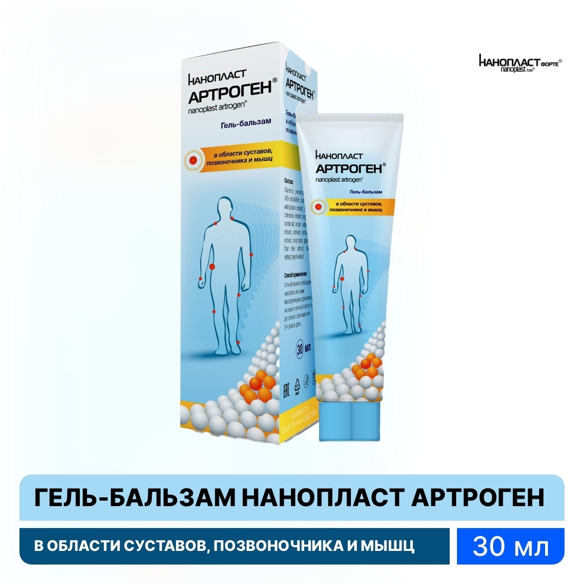 Нанопласт Артроген Гель-бальзам для тела с растительными экстрактами, 30мл / уходовая косметика