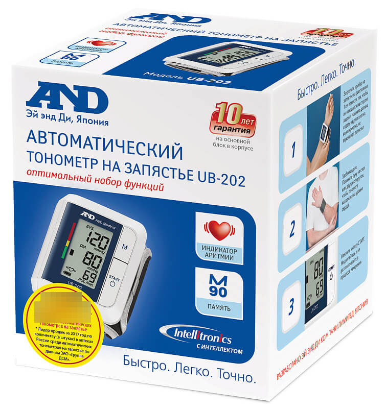 - Тонометр A&D UB-202 автоматический на запястье - 1 шт.