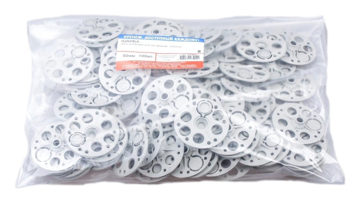 Шайба для утеплителя по деревянной обрешетке Стройбат без покрытия 60 мм (100 штук) 2524061. Применение: для крепления изоляционных материалов, таких как каменная вата, минеральная вата, полистирол, полиуретан, пенопласт, к деревянному основанию. Материал изготовления: полипропилен.