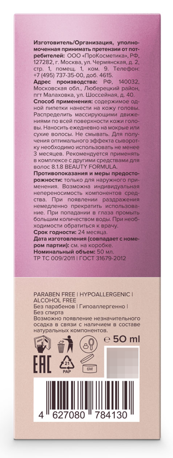 8.1.8 Beauty formula / 8.1.8 Бьюти формула B. Strong Hair Сыворотка для роста волос с витамином Е, 50мл / уходовая косметика