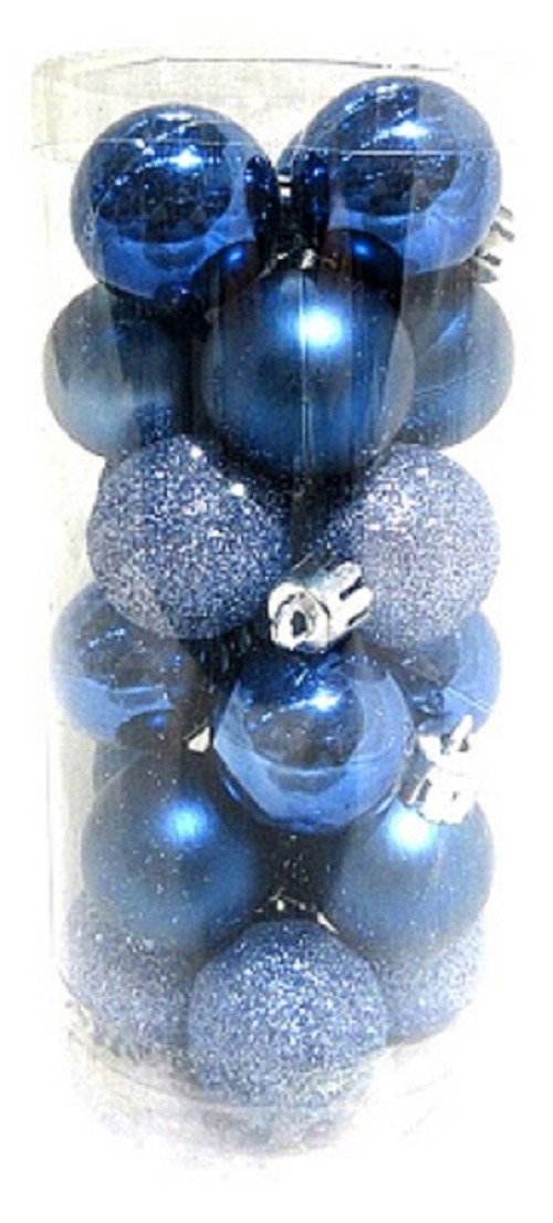 Елочные шары Волшебная страна Набор Синий однотонные, пластиковые, синие, диаметр 3см, 24шт. в упаковке / товары для праздников