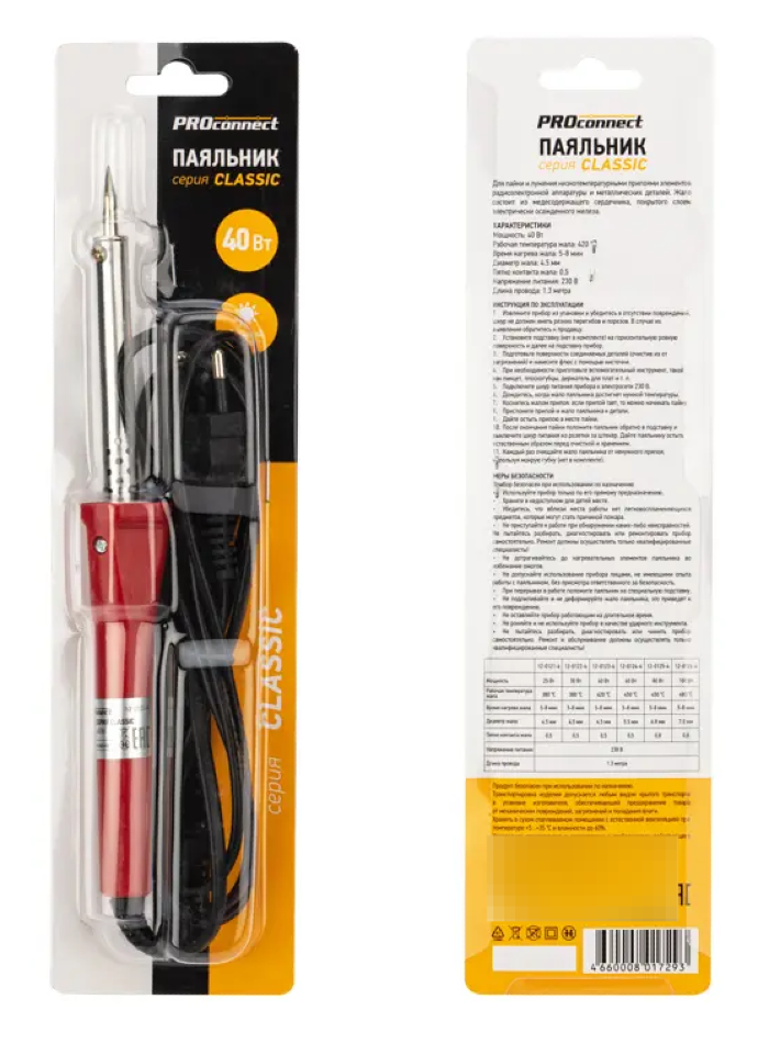 Электропаяльник PROconnect Classic реализуется в индивидуальной упаковке.