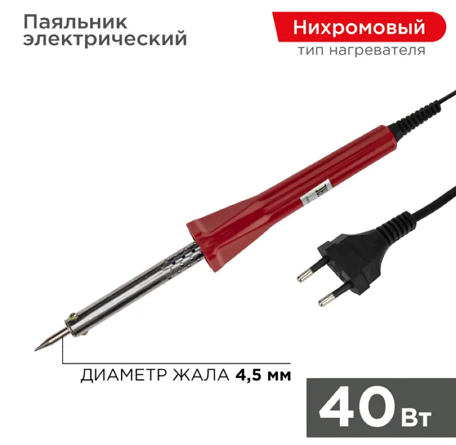 - Паяльник электрический PROconnect Classic с долговечным жалом и нихровым нагревателем, 40Вт 230В, 12-0124-4 - 1шт