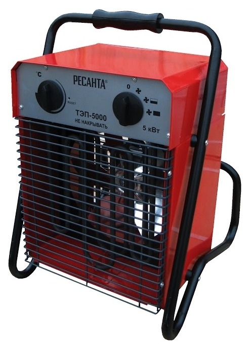 Тепловая пушка Ресанта ТЭП-5000 электрическая, в стальном корпусе, 425x345x290мм, 5кВт, 50м², 400м³/ч, IP 20 / отопление