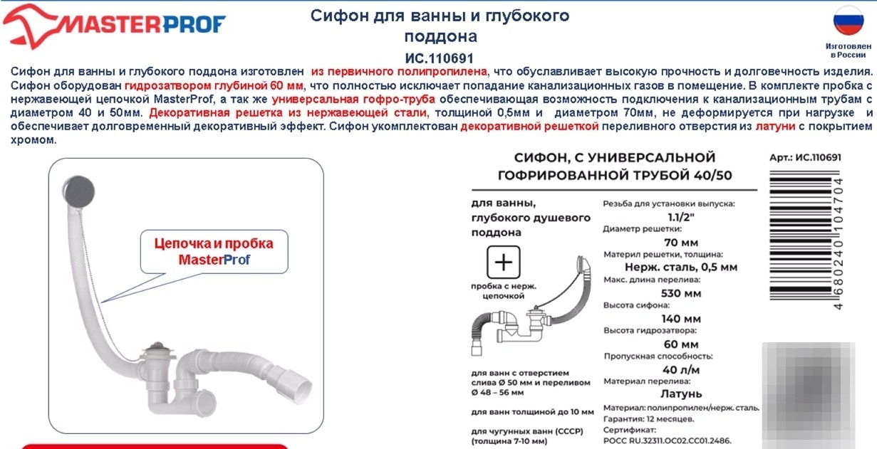 Протекающие стыки, лужи под раковиной и вечный поиск потерявшихся прокладок — знакомые сантехнические «сюрпризы»? Сифон сливной Masterprof перевернет ваше представление о надежности. Его инновационная конструкция исключает ошибки сборки: все элементы фиксируются без лишних усилий, сохраняя герметичность на десятилетия.
