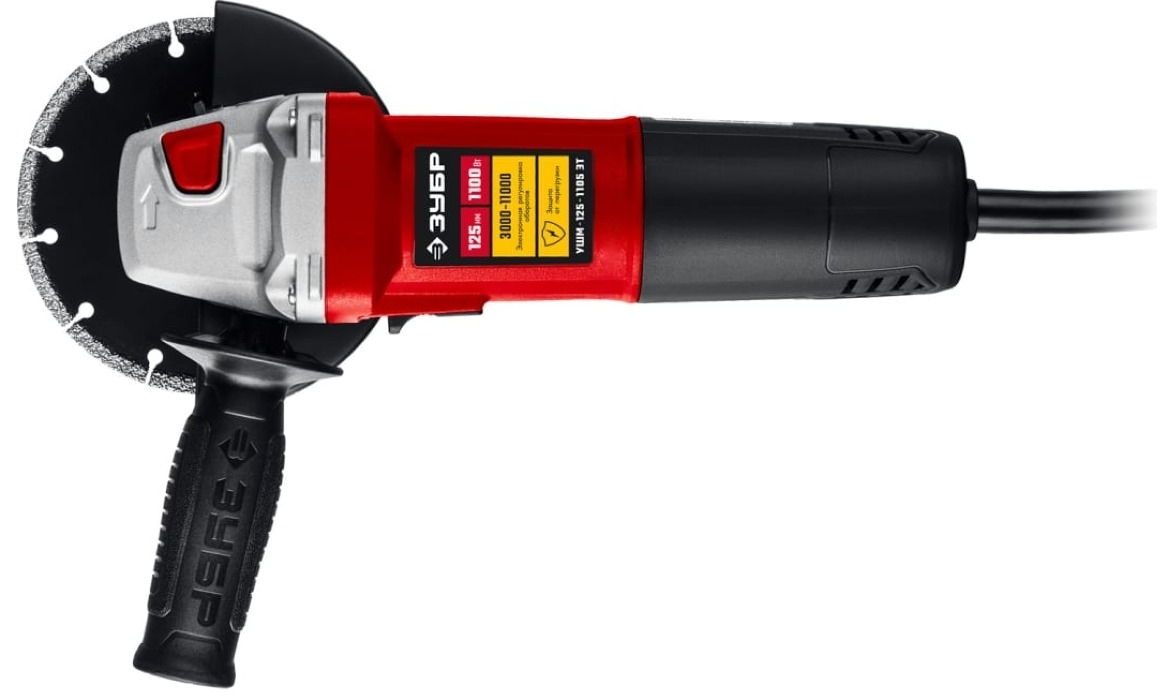 - Шлифмашина угловая Зубр УШМ-125-1105 ЭТ сетевая, посадочный диаметр 22.2мм, М14, диск 125мм, 230В, 11000об/мин, 1100Вт - 1шт.