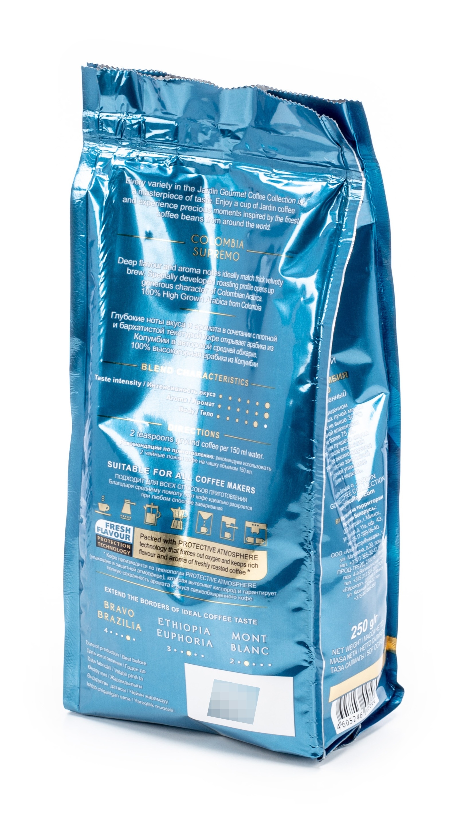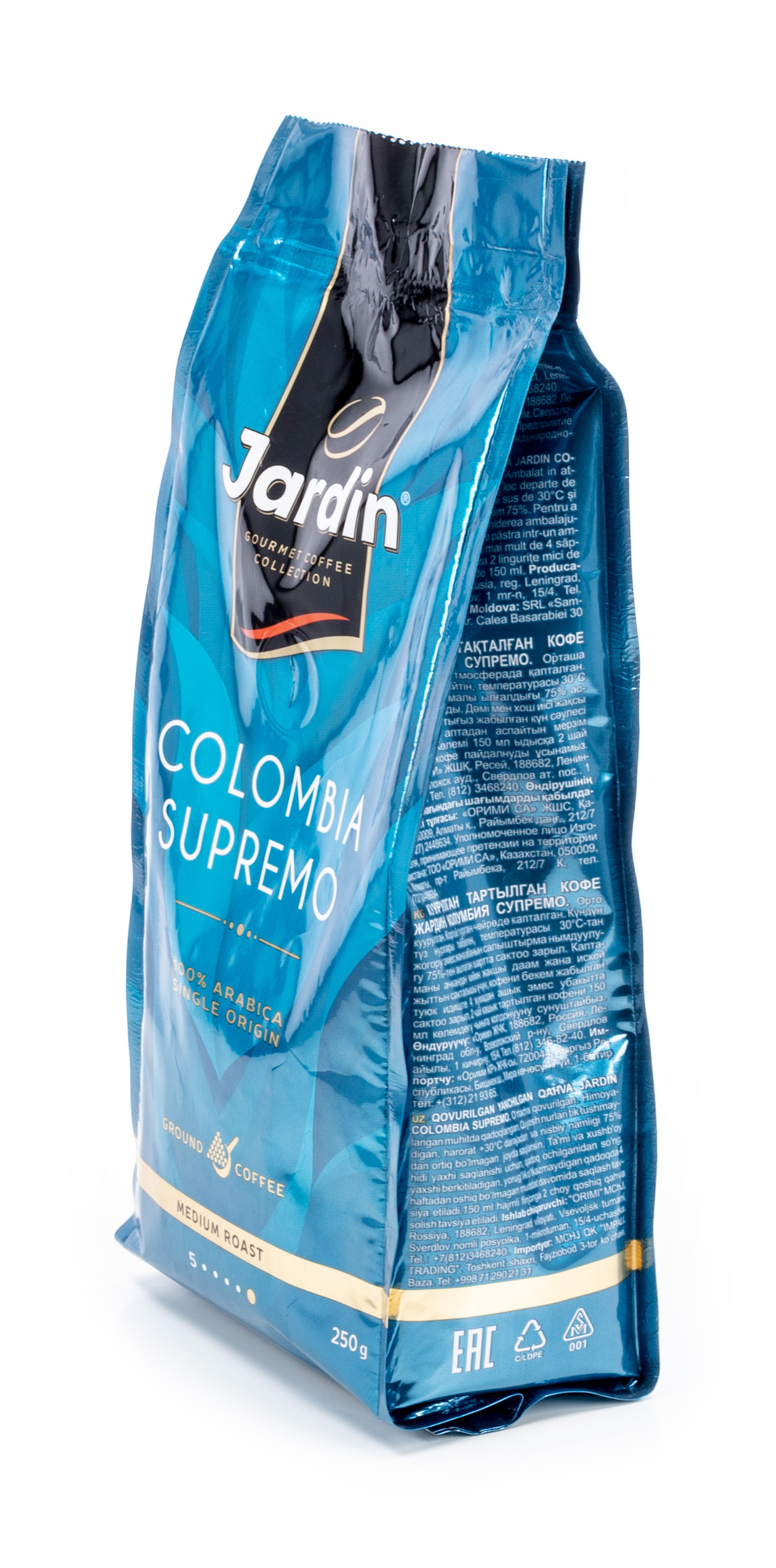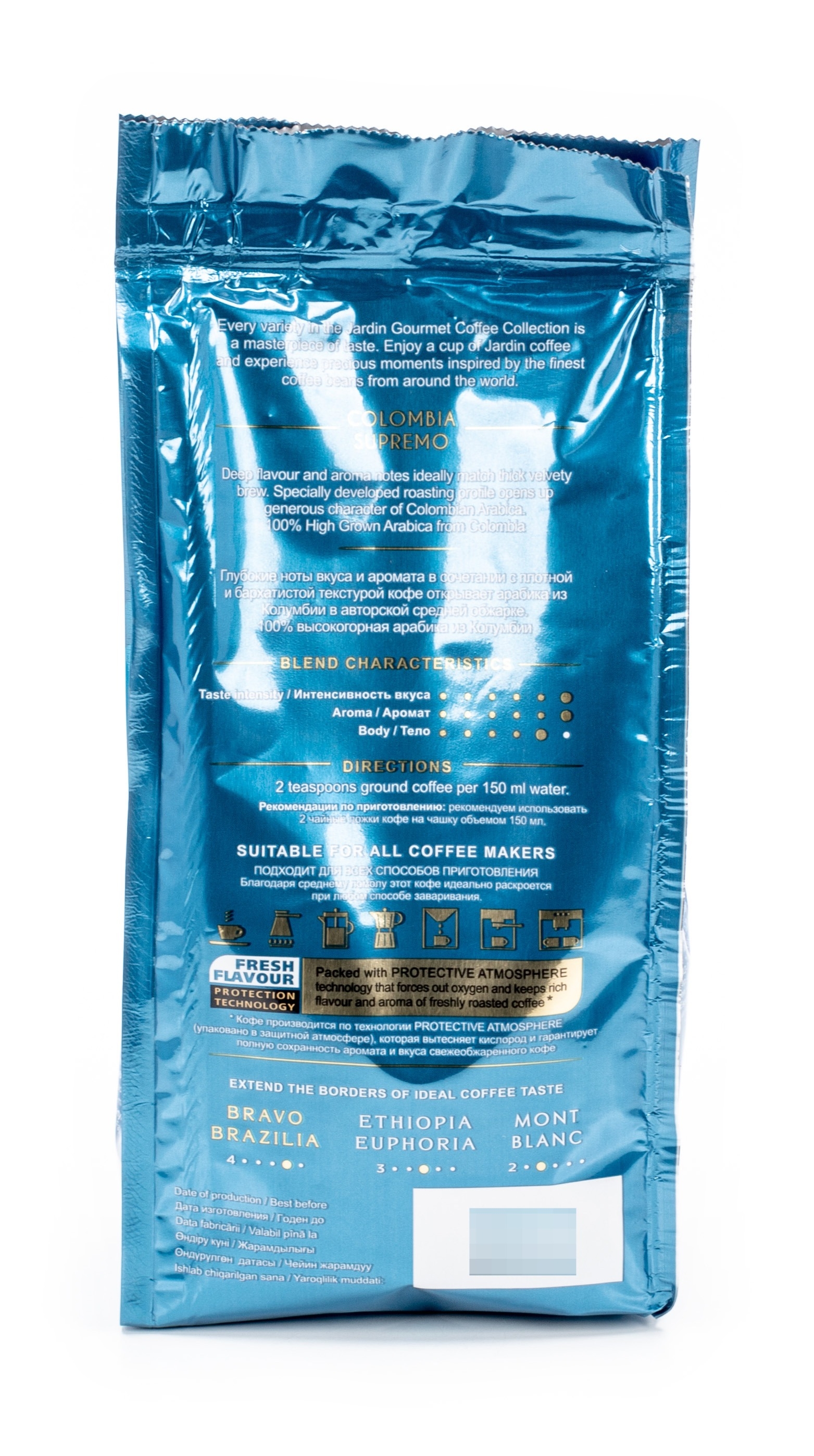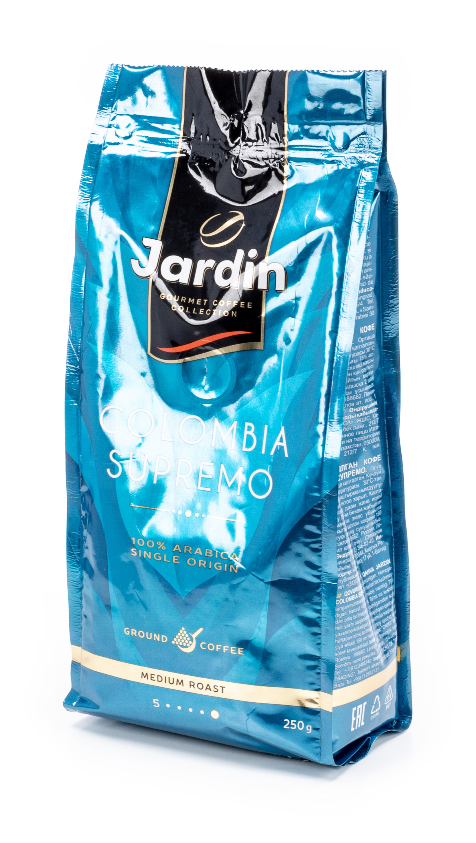 Кофе молотый Jardin / Жардин Colombia Supremo Medium Roast средняя обжарка, глубокие ноты вкуса и аромата, средний помол, черный в упаковке 250г / арабика 100%