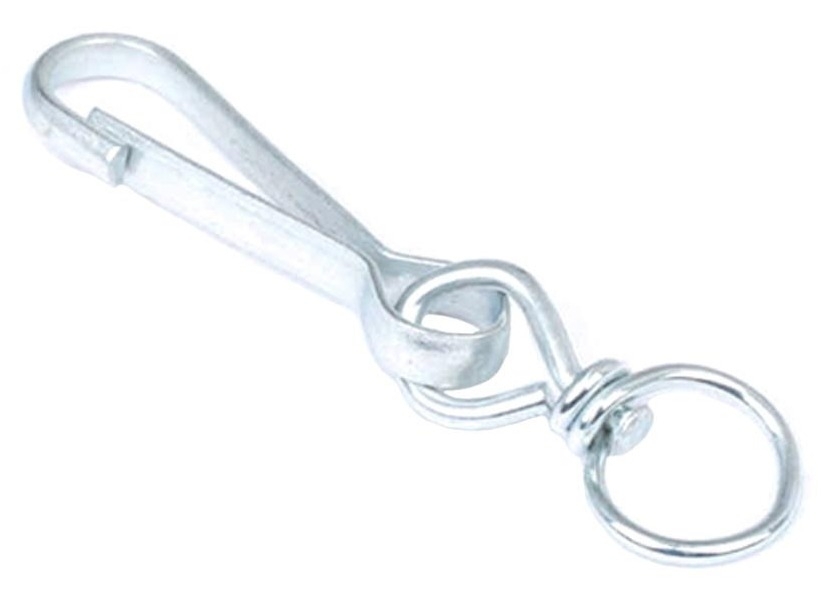 Применение: для быстрого простого надежного разъемного соединения между собой цепей, тросов, веревок, ремней и т. п., а также для крепления их к различным конструкциям и основаниям. Имеет грушевидную форму круглого сечения с пружинной защелкой и прикрепленное к нему кольцо, свободно вращающееся и предотвращающее перекручивание в процессе работы. Используется в быту, строительстве, судостроении, при погрузочно-разгрузочных работах. Материал изготовления: сталь. Покрытие: белый цинк.