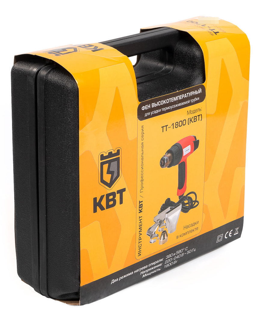 - Строительный фен КВТ ТТ-1800 Мастер пистолетный, с регулировкой температуры, красный, 580°С, мощностью 1800Вт - 1шт.